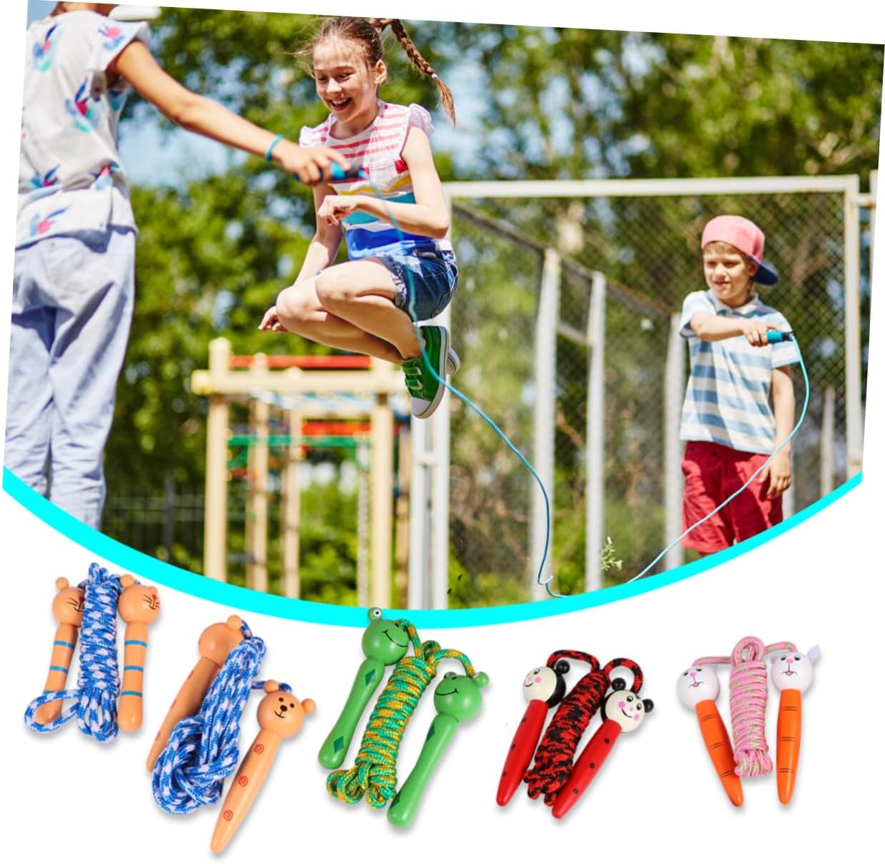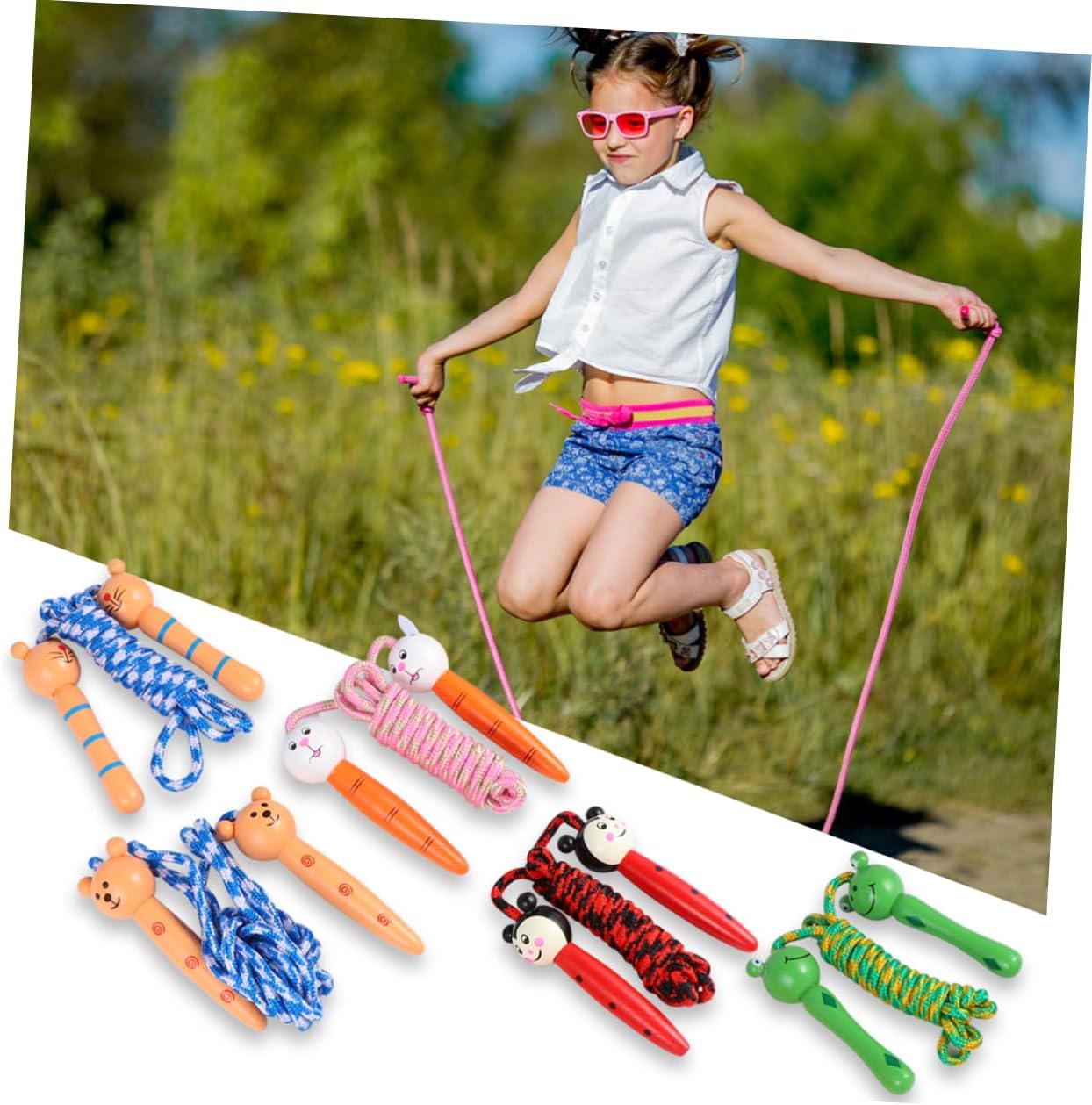 – Colour: Assorted shade animal jump-rope.