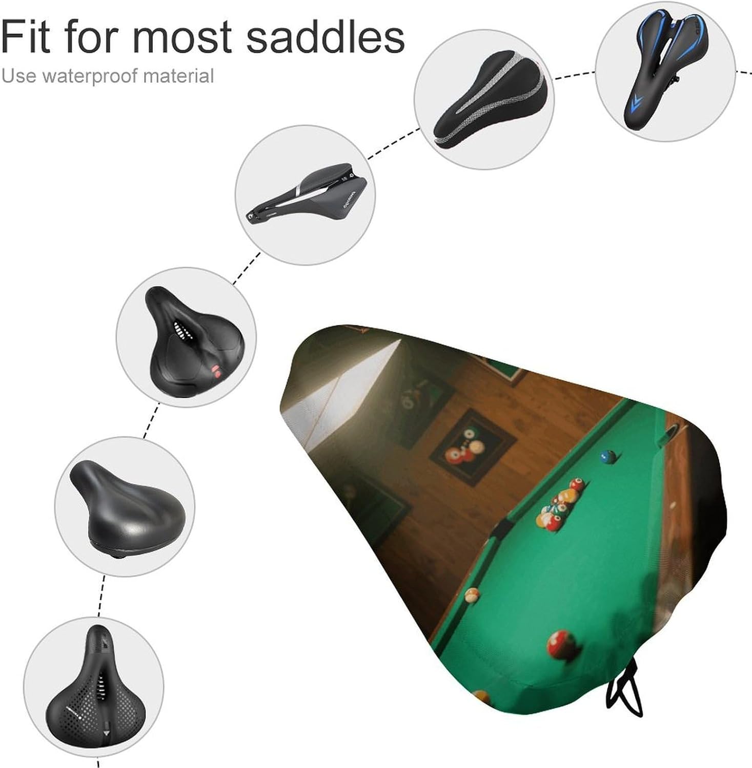 Versatile Compatibility: This Common Billiards Bicycle Seat Cowl Is an Unbelievable Match for Most Bike Seats, With Dimensions of 14.5 X 10.6 Inches. No Matter What Type of Bike You have Acquired — Mountain, Street, Stationary, Metropolis, Cruiser, Train, Or Spin — This Common-Match Billiards Bike Seat Covers for Consolation Has You Lined