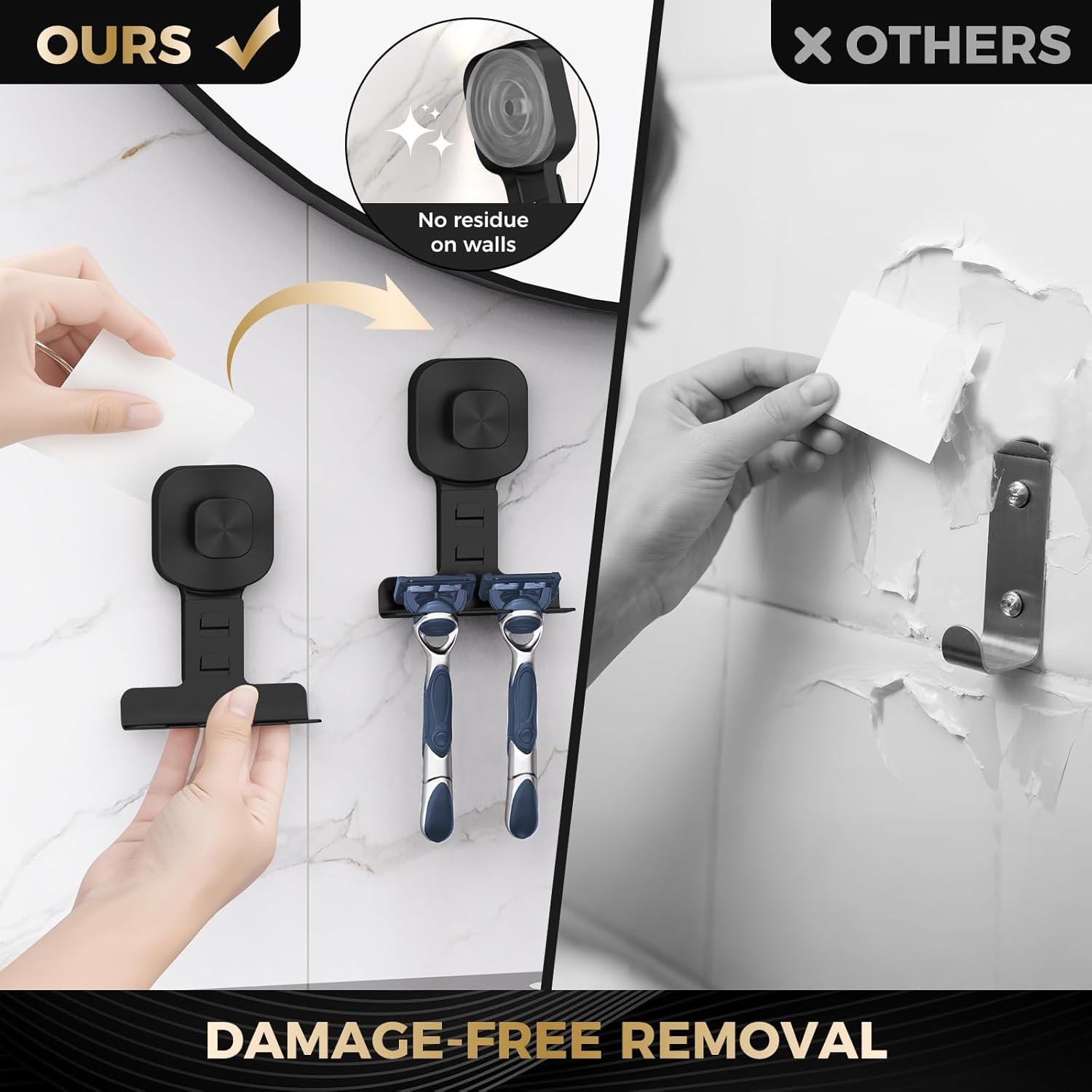【Match for Most Razors】Tailor-made particularly for handbook razors,this bathe razor holder accommodates a variety of handbook kinds,together with disposable razors and security razors.Its considerate design makes it appropriate for each women and men,eliminating the trouble of mismatched holders and protecting your handbook razor neatly organized within the toilet