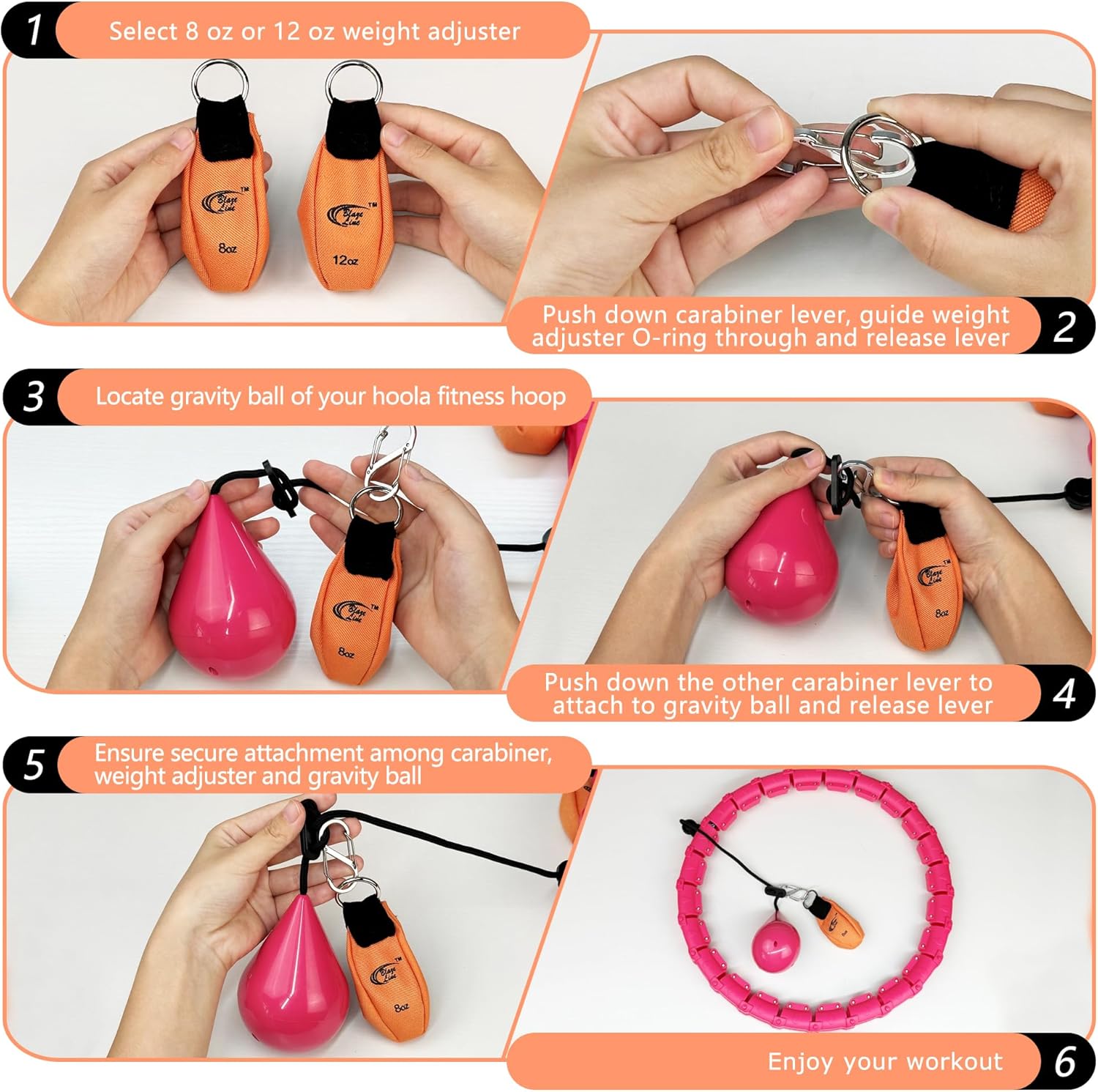 【Straightforward Use and Set up】Use included carabiner to connect and detach the load pouch to the gravity ball of your hula hoop weighted with ease.