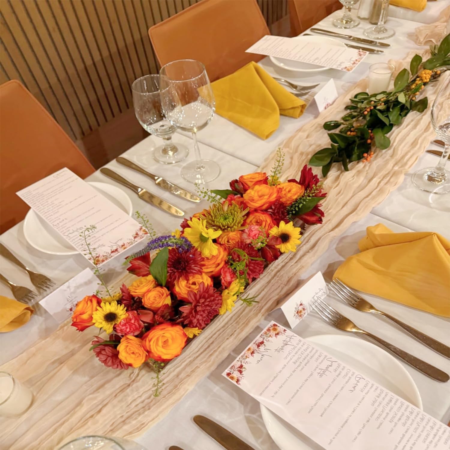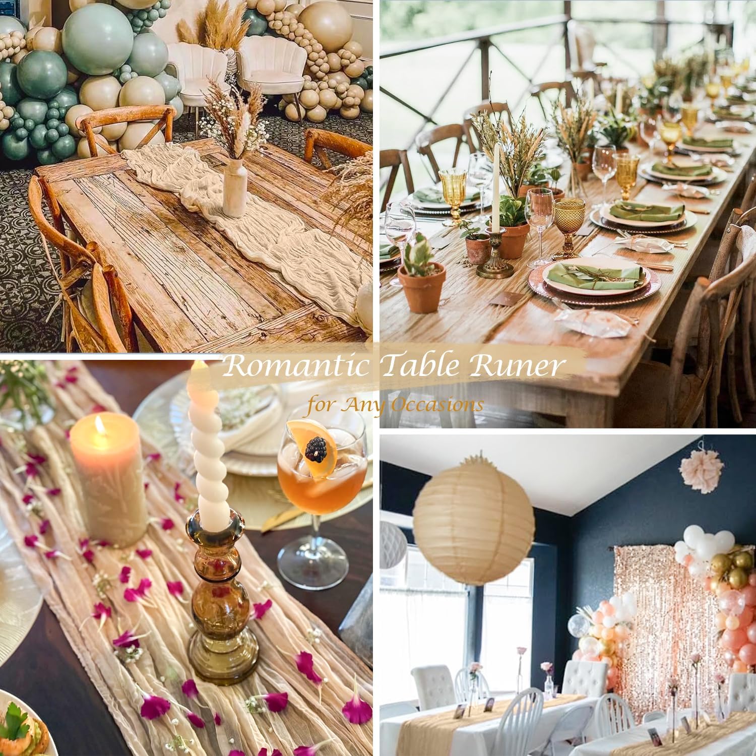 🥂【Reusable & Delicate】These romantic beige desk runner is product of premium cheese gauze material with lovely crinkling. Delicate feeling, reusable, washable and fade resistant. These beige cheesecloth desk runner undertake distinctive pleated workmanship, including a contact of romantic and stylish to your occasions. The boho wedding ceremony desk runner is sheer, pure drape, light-weight and skin-friendly. Delicate desk linen with attractive completed edges drapes gracefully throughout your banquet desk, provides to romantic, delicate, and flowy vibe.