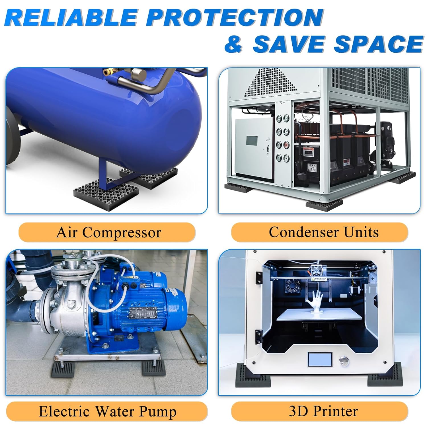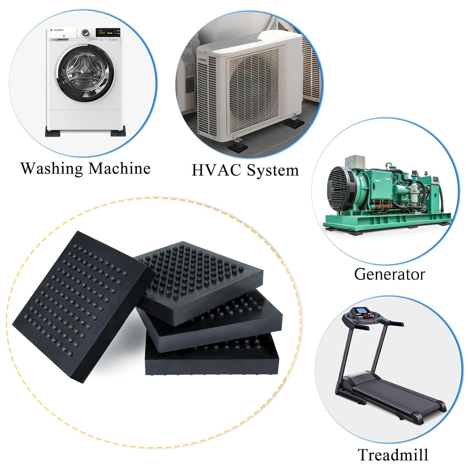 【VERSATILE APPLICATIONS】: These non-toxic, easy-to-use vibration isolation pads are perfect for heavy-duty machines like washing machines, condensers, air conditioners, turbines, blowers, pumps, ID/FD followers, cooling towers, diesel engines, compressors, followers, and industrial equipment. Improve the soundness and longevity of your gear with these anti-vibration pads. NOTE: As these anti-vibration insulators are newly manufactured, they could initially have a gentle odor that can dissipate over time