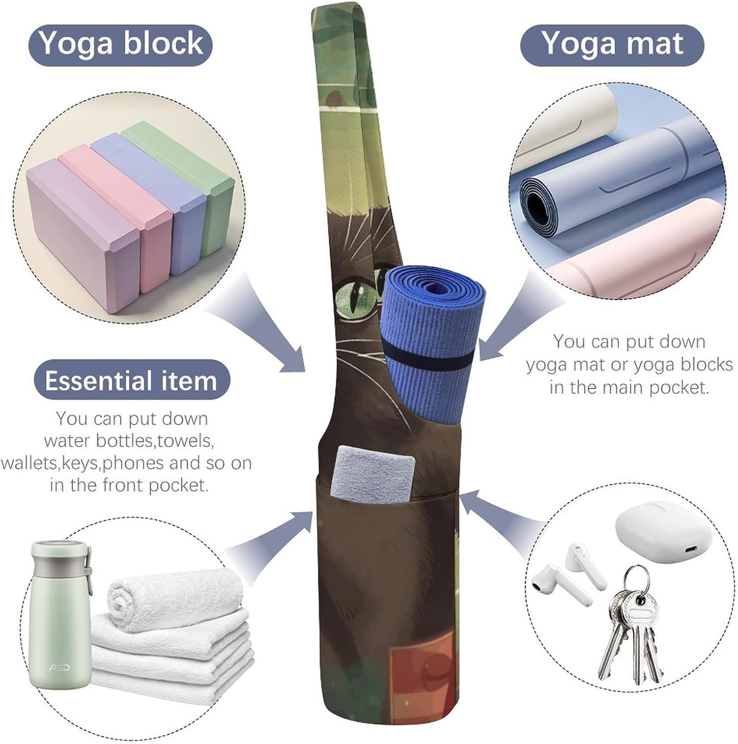 Be the first to review “Cartoon Cat And Christmas Yoga Mat Bag Long Tote Yoga Bag with Large Side Pocket Yoga Mat Carrier Fit Most Size Mats”