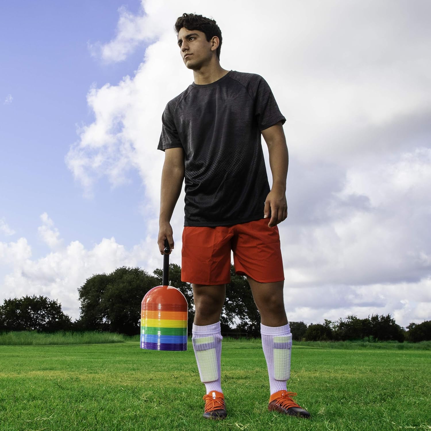 Enhance your coaching classes with the Champion Sports activities Inflexible Dome Cone Set. These versatile cones are perfect for drills, fitness center workouts, or playground actions. Use them as subject markers or to reinforce participating impediment or agility programs. Every set consists of 36 cones (6 every in blue, crimson, inexperienced, purple, orange, and yellow). For handy storage, a storage pole can be supplied. The Champion Sports activities Inflexible Dome Cone Set affords a sturdy and colourful answer for reinforcing your crew’s efficiency and coaching effectivity.