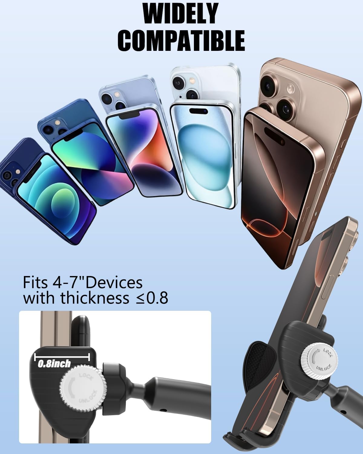【Steady & Safe】This telephone holder constructed with a bolstered aluminum alloy gooseneck, anti-slip silicone pads, and a safe rotating telephone clip lock, ensures your telephone stays firmly in place.