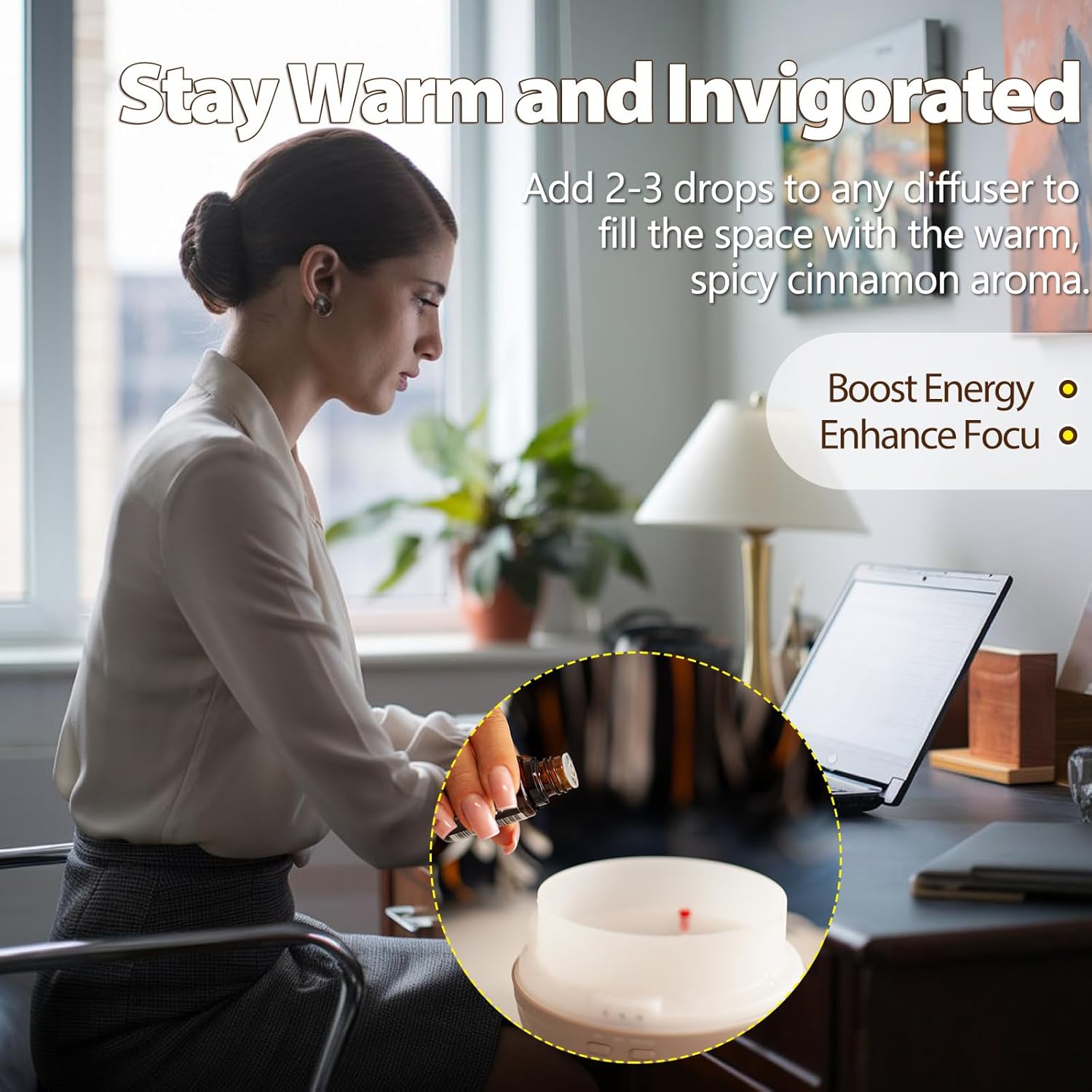 【Uplifting Aromatherapy Expertise】Create a heat and welcoming environment with the spicy, candy scent of cinnamon important oil. Excellent for enhancing temper and selling rest.