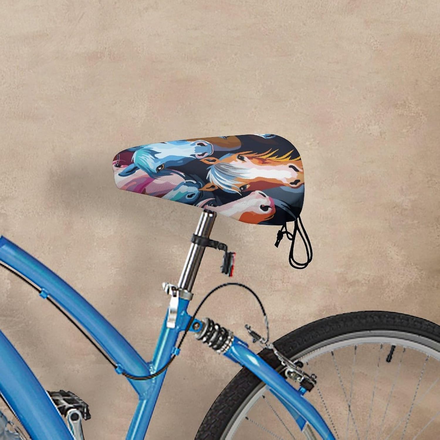 Premium Materials: Our Colourful Cartoon Horses Mountain Bike Saddle Is Manufactured from Oxford Cloth, Which Is Smooth and Snug, Reusable and Water Proof. Colourful Cartoon Horses Bike Seat Cushion Cowl Matches Completely Round Your Bike Seat and Retains Your Seat Dry for a Lengthy Time