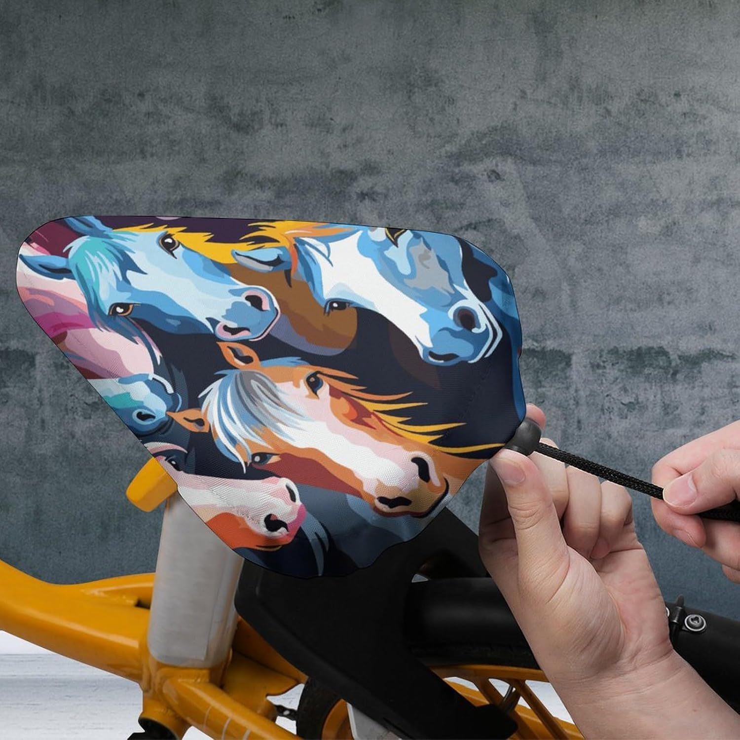 Bicycle Seat Protector: Not Solely Can Colourful Cartoon Horses Bike Cushion Shield from Rain, Can Additionally Shield Your Seat from Rain, Mud, Wind, And Daylight, Avoiding the Colourful Cartoon Horses Saddle from Being Scratched or Dirty. All-Round Safety for Your Beloved Bike’s Saddle