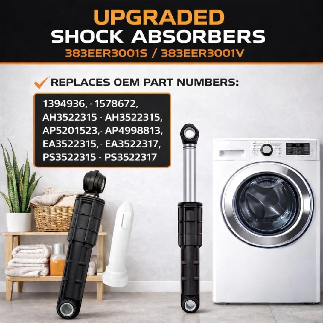 This washer shock absorber equipment is designed as a suitable and generic answer match on LG washer and Kenmore washer platforms utilized in residential laundry environments. The equipment consists of three washer shock absorbers and 6 mounting pins supposed to assist washer suspension programs throughout operation. As an lg washer shock absorber equipment, this product is suitable with entrance load washer designs that depend on suspension management to handle drum motion. It features as an lg washer vibration shock absorber by supporting managed movement contained in the washer throughout wash and spin cycles. This lg washer suspension shock replaces widespread suspension parts related to half numbers 383EER3001V, 383EER3001S, shock absorber 383eer3001, upgraded 383eer3001s shock absorber, and 383eer3001j shock utilized in washer assemblies. It’s suitable match on lg washer and kenmore washer layouts requiring suspension assist. Designed for residence enchancment and elements washer upkeep, this washer shock absorber lg alternative could also be put in throughout washer servicing alongside washer hoses and washer hoses with out modification. The shock absorbers assist washer stability management in laundry environments the place washer stability is required. Utilized in washer restore and upkeep duties, these shocks and shock absorbers assist washer operation with out altering authentic washer construction. This generic washer answer is appropriate for laundry cleaner adjoining servicing and washer suspension upkeep.