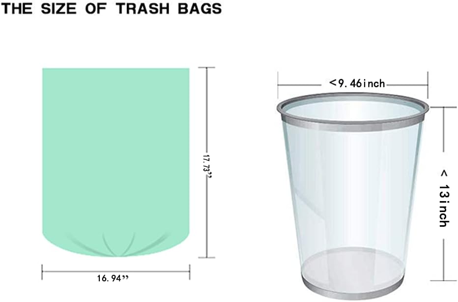 【Trash Luggage Measurement】: 16.94 Inch * 17.73 Inch rubbish luggage which is match with small measurement trash bins, spherical rubbish bins with diameter ≤ 9.46 inch, peak ≤ 13 inch, rectangular wastebaskets with longest facet ≤31.52 inch and peak ≤ 13 inch.