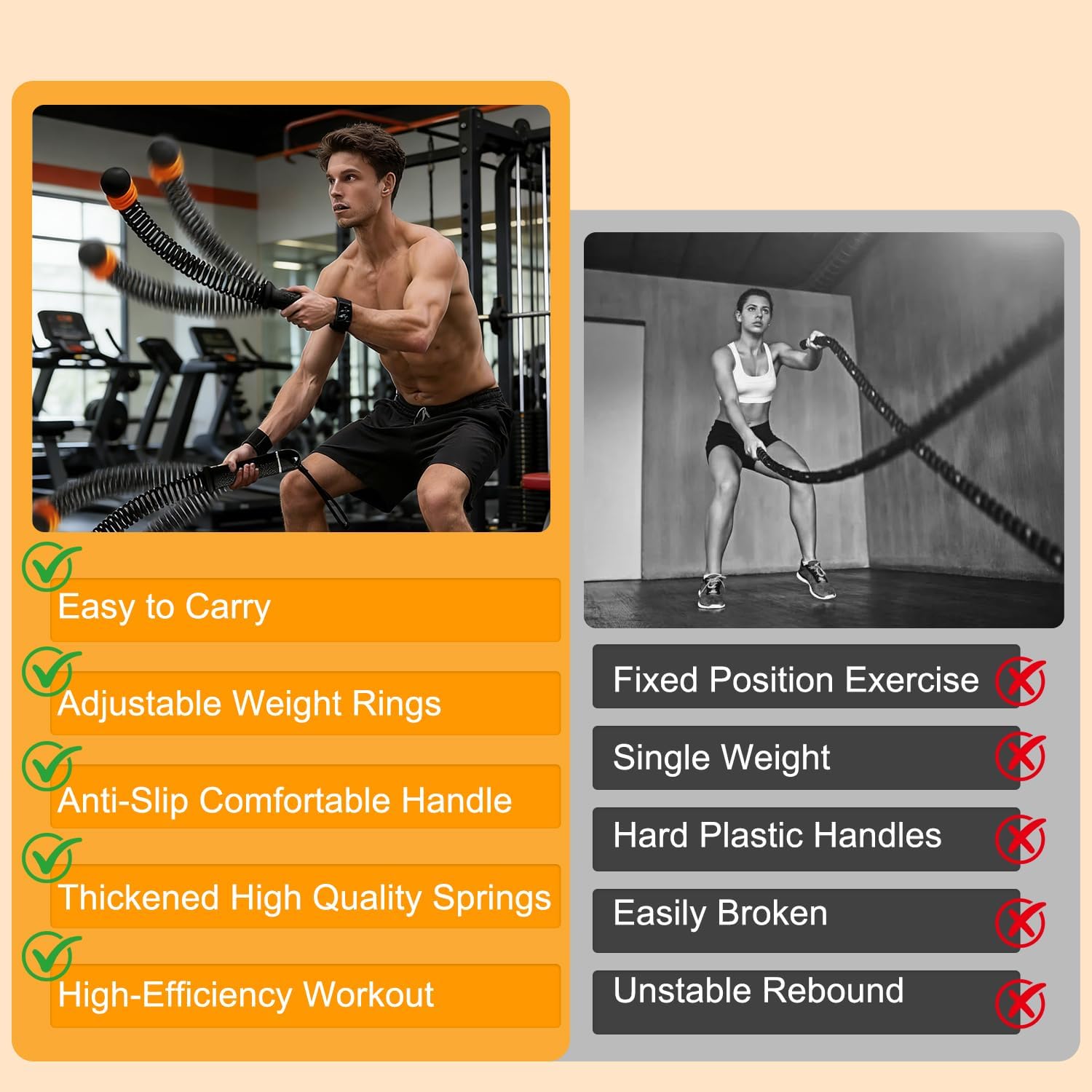 Cordless Battle Ropes with Adjustable Resistance Springs, Weighted Ropeless Battle Rope for House Health club with Storage Bag, Transportable Exercise Gear for Energy Coaching for Males & Ladies