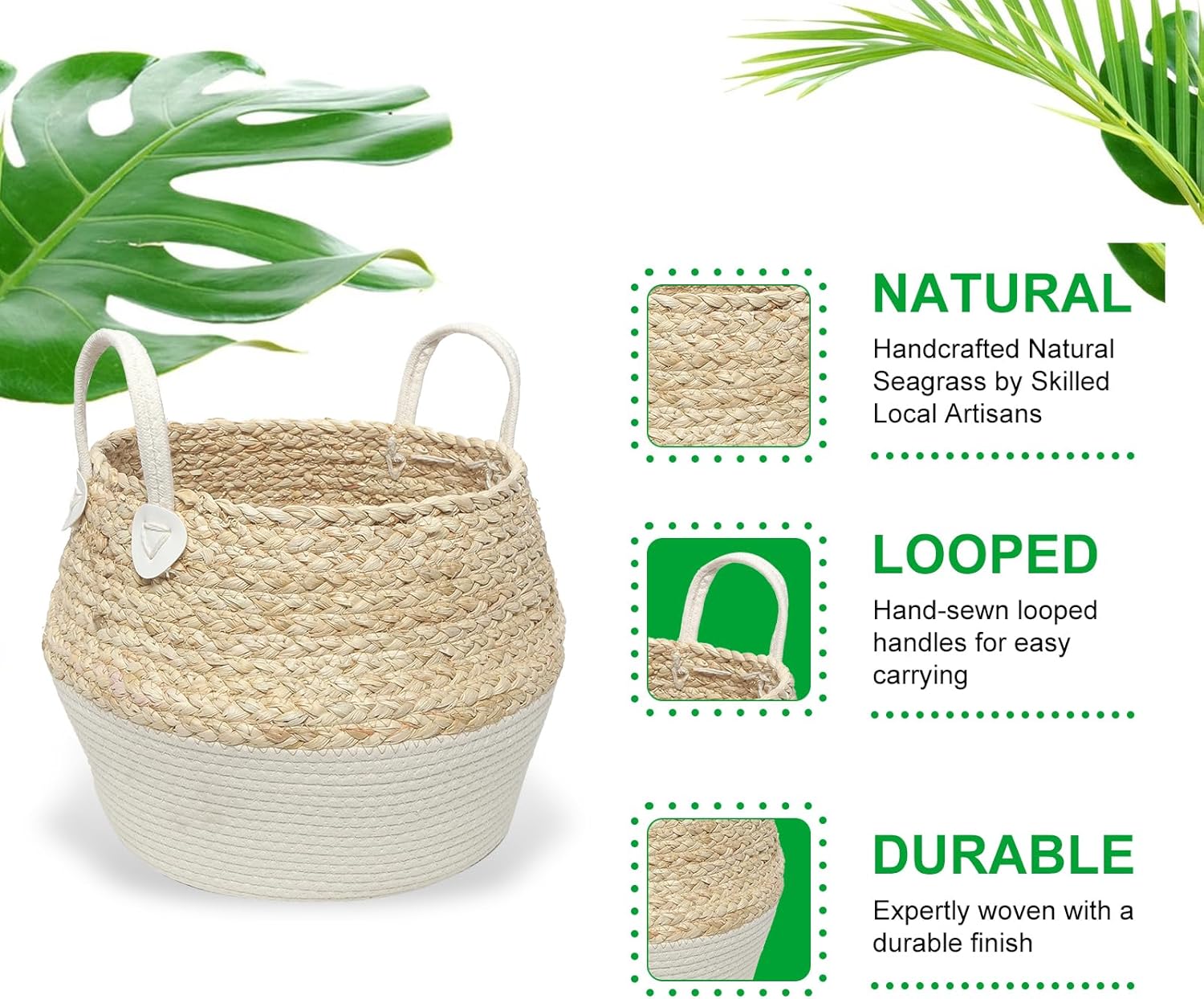 Eco-Pleasant Craftsmanship: Handmade from pure seaweed with no added chemical substances, this eco-friendly basket is sturdy, sustainable, and protected for on a regular basis use.