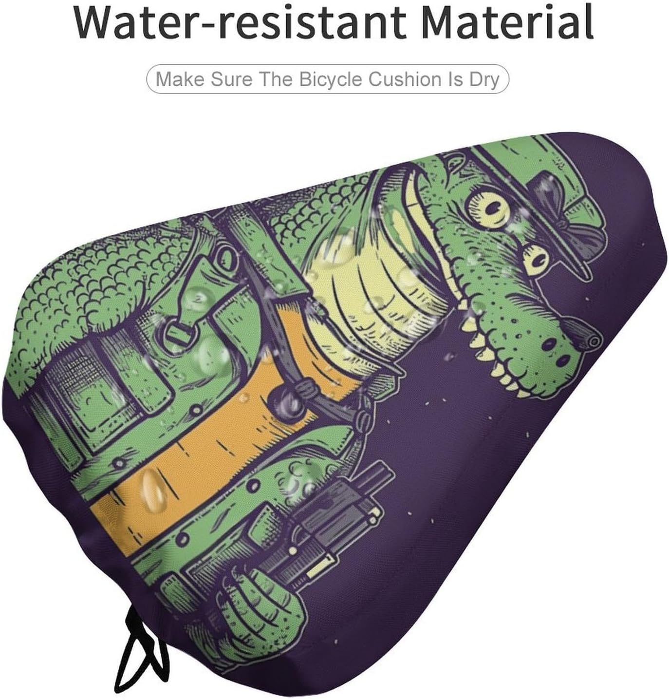 Stylish Design: Seat Cushion for Bike Is Excellent for Indoor and Outside Biking Fanatics. Common Bicycle Seat Covers Are Obtainable in a Number of Eye-Catching Patterns and Colours. These Crocodile Holding Gun Bike Cushion Seat Protector for Rainproof Will Make Your Bike Stand out and Make It Straightforward to Discover Your Bike at a Look