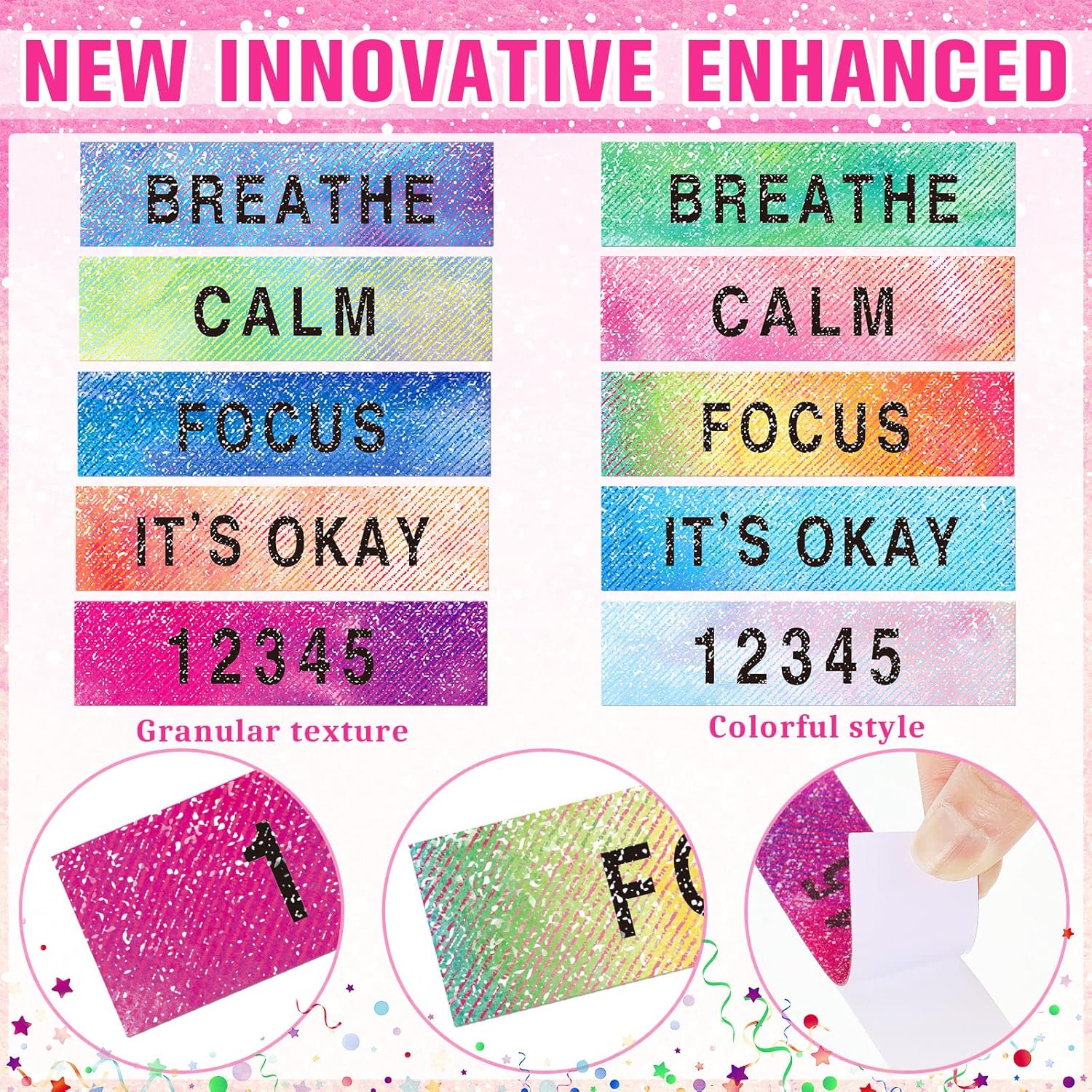 Leaves No Residue: you’ll be able to stick sensory anti stress strips to you want, resembling cellphone circumstances, computer systems, desktops, notebooks and different flat and clean surfaces; They aren’t straightforward to go away marks and dust after being eliminated