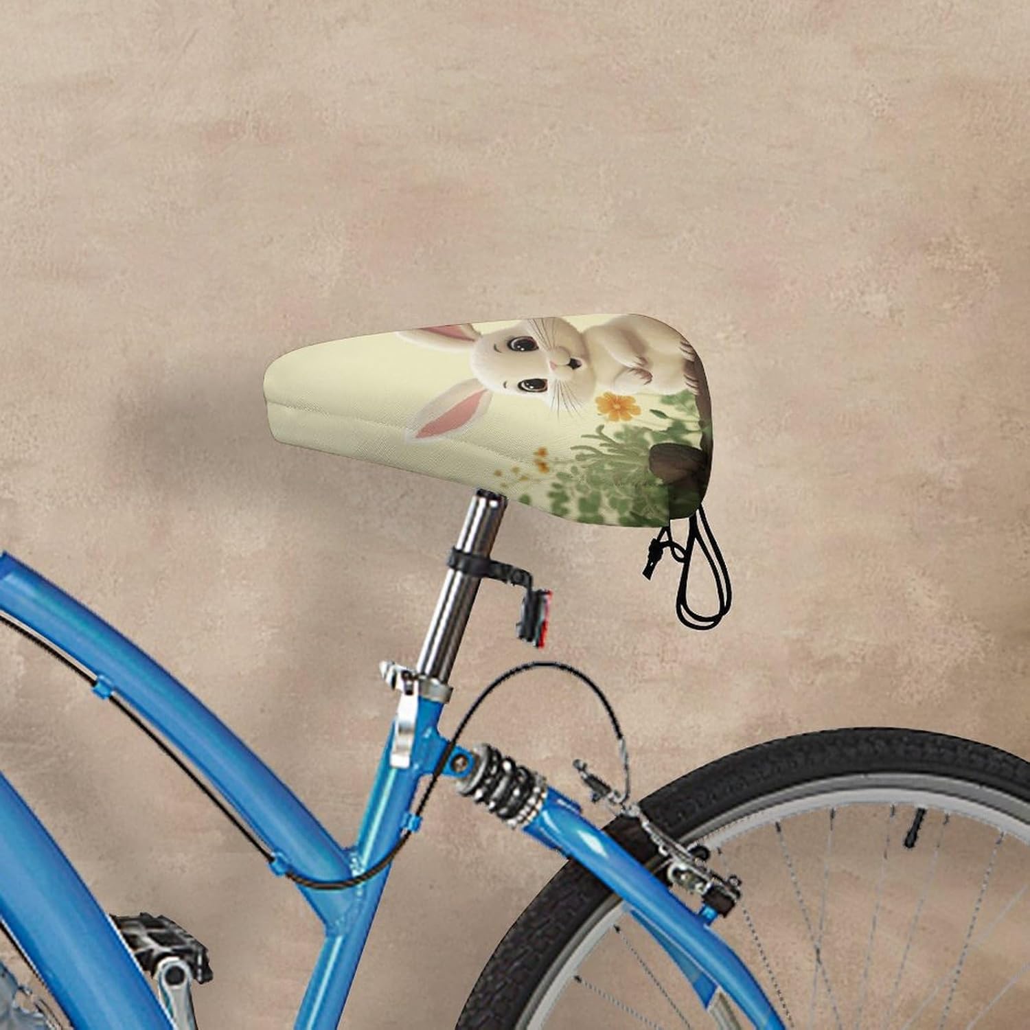 Cute Bunny Bike Seat Cover Water-Repellent Exercise Bike Seat Cushion Bicycle Saddle Cover with Drawstring Rain Snow Dust Covers for City Mountain Road Biking