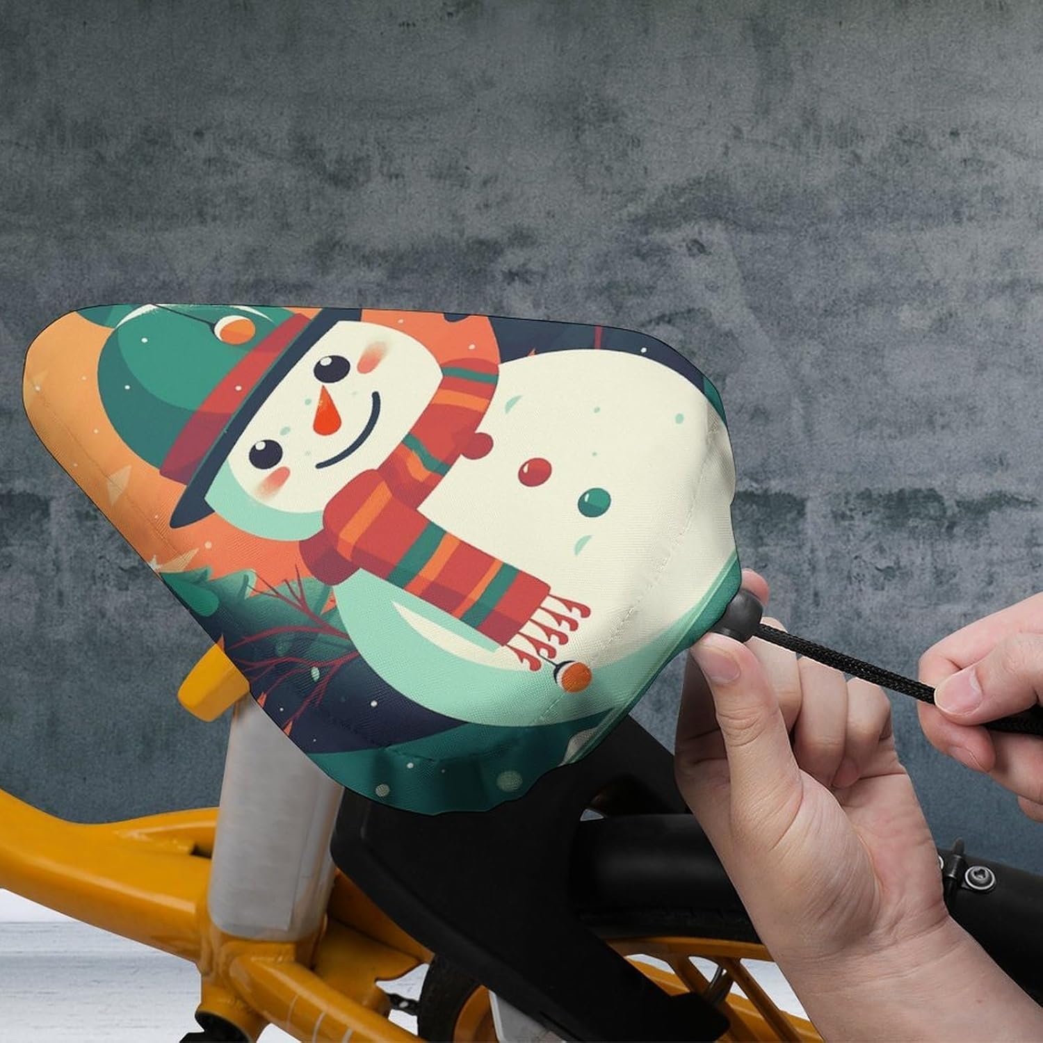 Drawstring Design: The Gentle Padded Bike Seat Cowl Is Designed with a Versatile Drawstring Closure System That Ensures a Safe Match and Prevents Shifting Throughout Rides. Cute Snowman Stickers Street Bike Seat Cowl Simplifies Set up for Added Comfort and Aesthetic Attraction