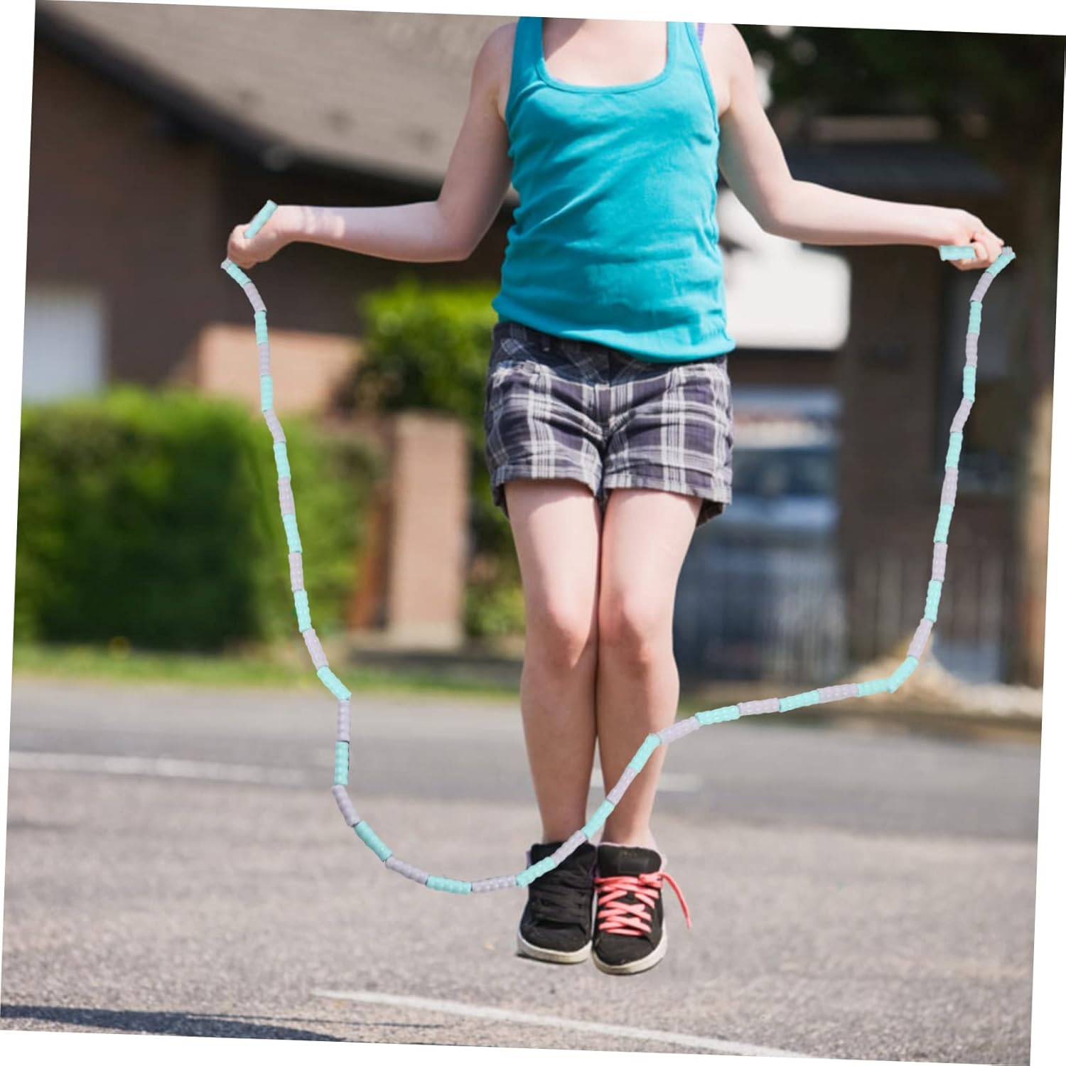 – Coloration: Mild inexperienced and gray College Leaping Rope.