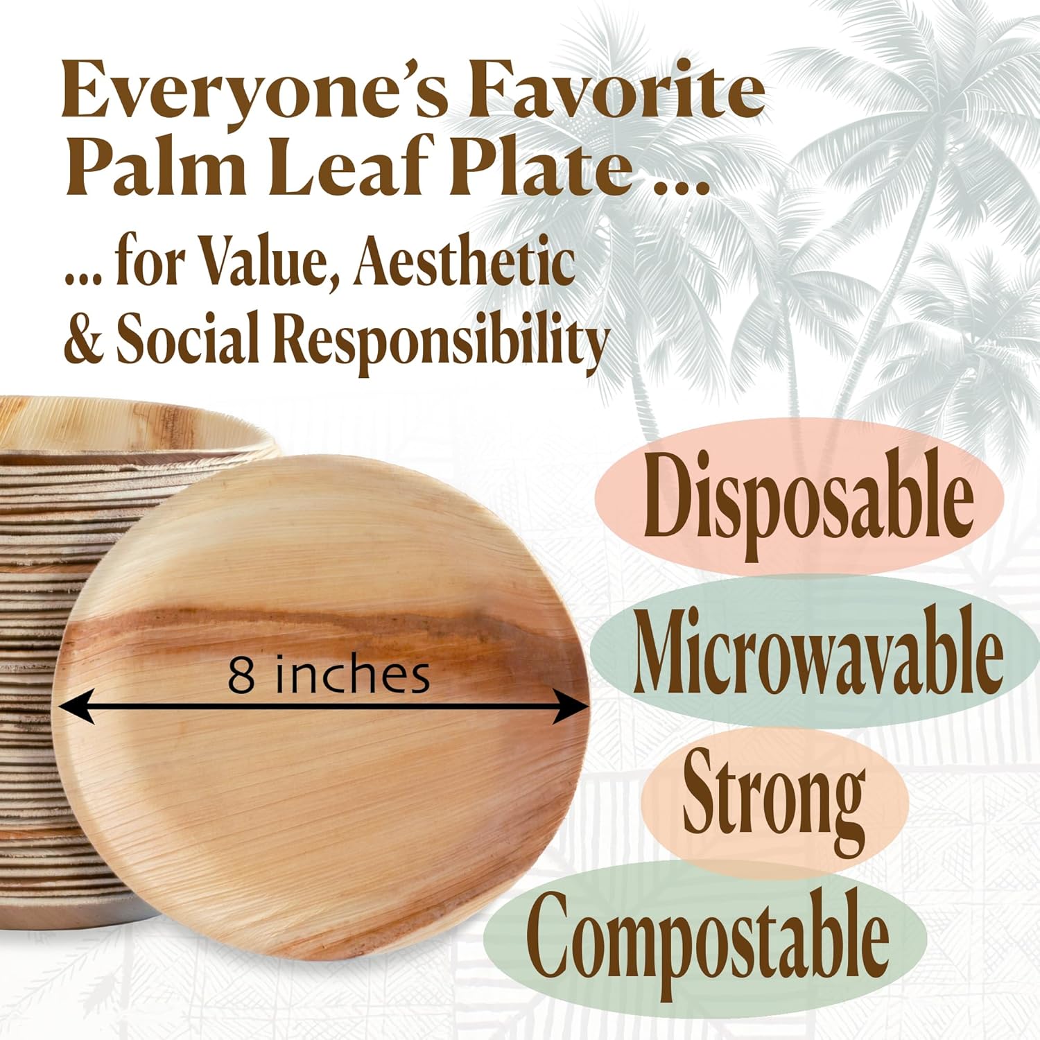 ECO FRIENDLY DISPOSABLE PLATES: Palm leaf plates supply sturdy, engaging choices—Compostable 100% biodegradable, an ideal various to plastic, paper plates or bamboo plate units