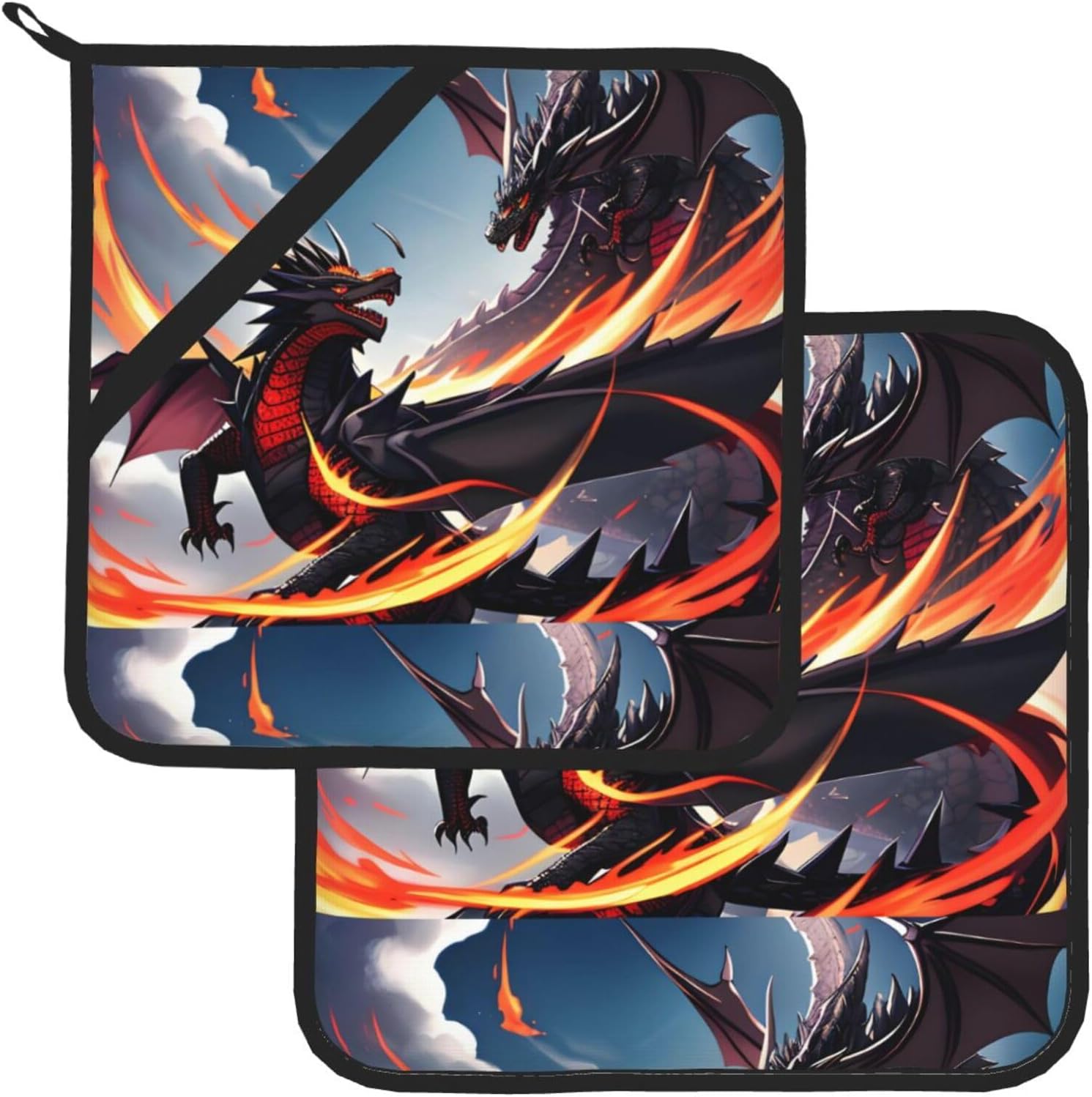 The WHJSHOP Double Dragon Battle Sample Sq. Insulated Pot Mat 2 Items are crafted from high-quality waterproof polyester cloth and anti-scald materials, guaranteeing distinctive warmth insulation and safety throughout kitchen duties like lid elimination, making them thick, sturdy, and ideal for stopping burns whereas dealing with sizzling pots and pans in varied eventualities.