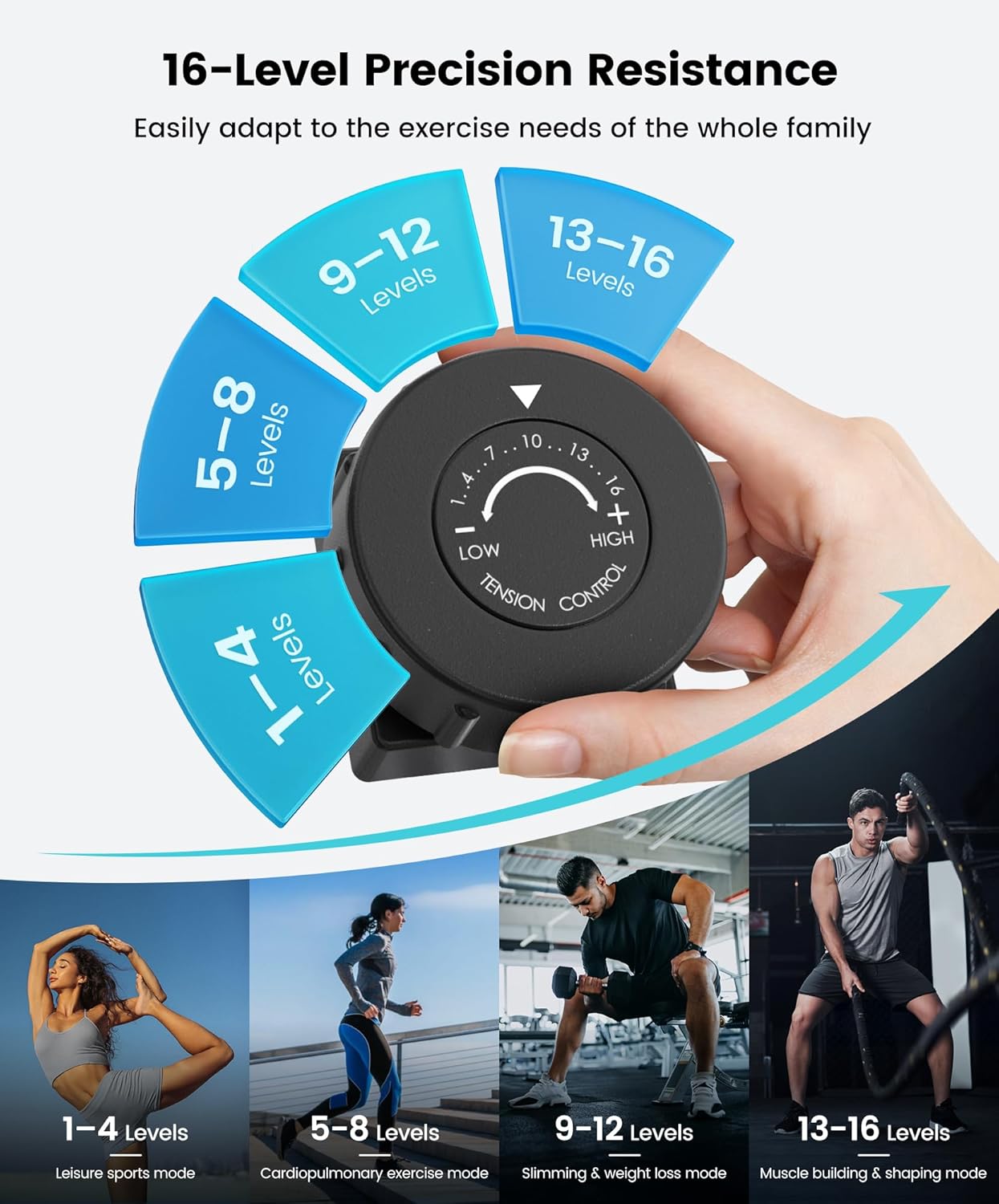 【16‑Degree Precision Resistance】Powered by a 6 kg bidirectional flywheel, the Dripex elliptical machine delivers uninterrupted, momentum‑wealthy movement. Sixteen finely tuned resistance ranges allow you to dial in precisely the proper depth—from mild restoration rides to excessive‑load energy cardio