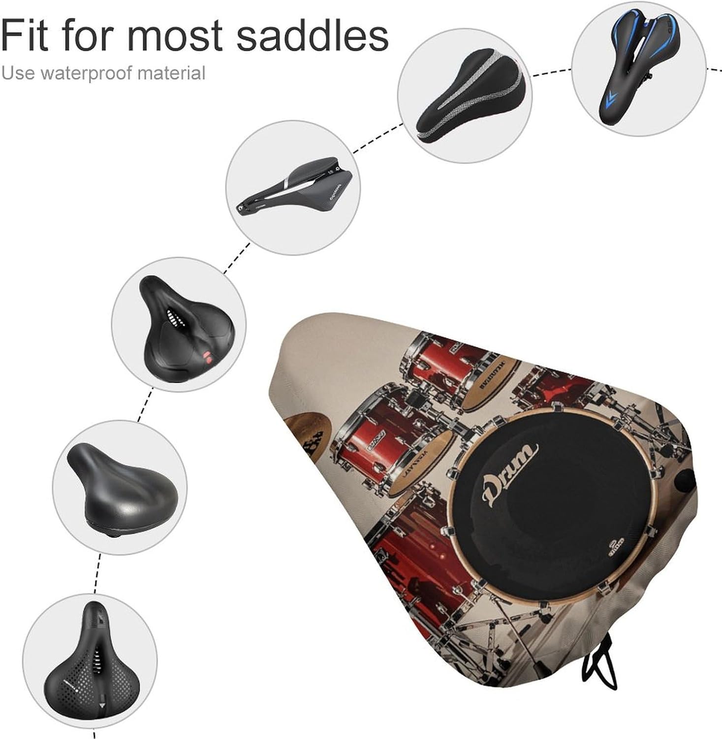 Premium Materials: Our Drum Set-standard Mountain Bike Saddle Is Manufactured from Oxford Material, Which Is Delicate and Snug, Reusable and Water Proof. Drum Set-standard Bike Seat Cushion Cowl Suits Completely Round Your Bike Seat and Retains Your Seat Dry for a Lengthy Time