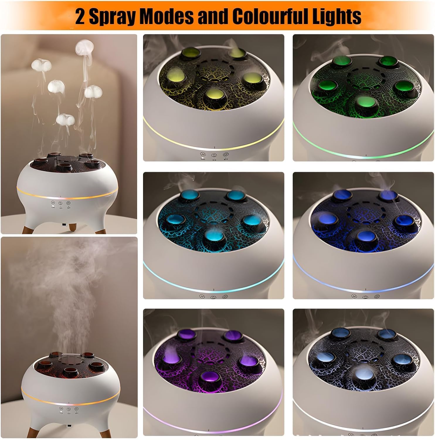 Calming Jellyfish Mode: Mist spirals upward like ethereal sea creatures, paired with tender aromatherapy to soften away stress.Social gathering-Prepared Sound Mode: Clap or play music to make mist “dance” rhythmically—perfect for gatherings or artistic inspiration.