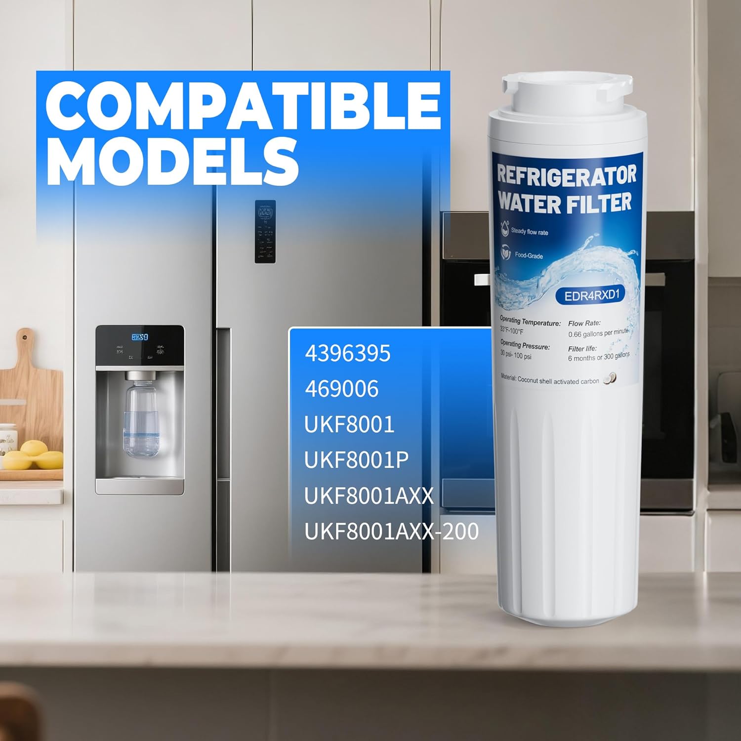 COMPATIBLE MODELS:EDR4RXD1 water filter Substitute Appropriate with UKF8001,EDR4RXD1,4396395,UKF8001AXX,UKF8001AXX-200,PURICLEAN II,UKF8001P,469006,WF295,WRF555SDFZ16,WRX735SDBM00,KRFC300ESS01, Observe: We don’t promote unique filters. Earlier than buying our merchandise, please affirm whether or not they’re appropriate in your personal merchandise to keep away from buying the improper ones