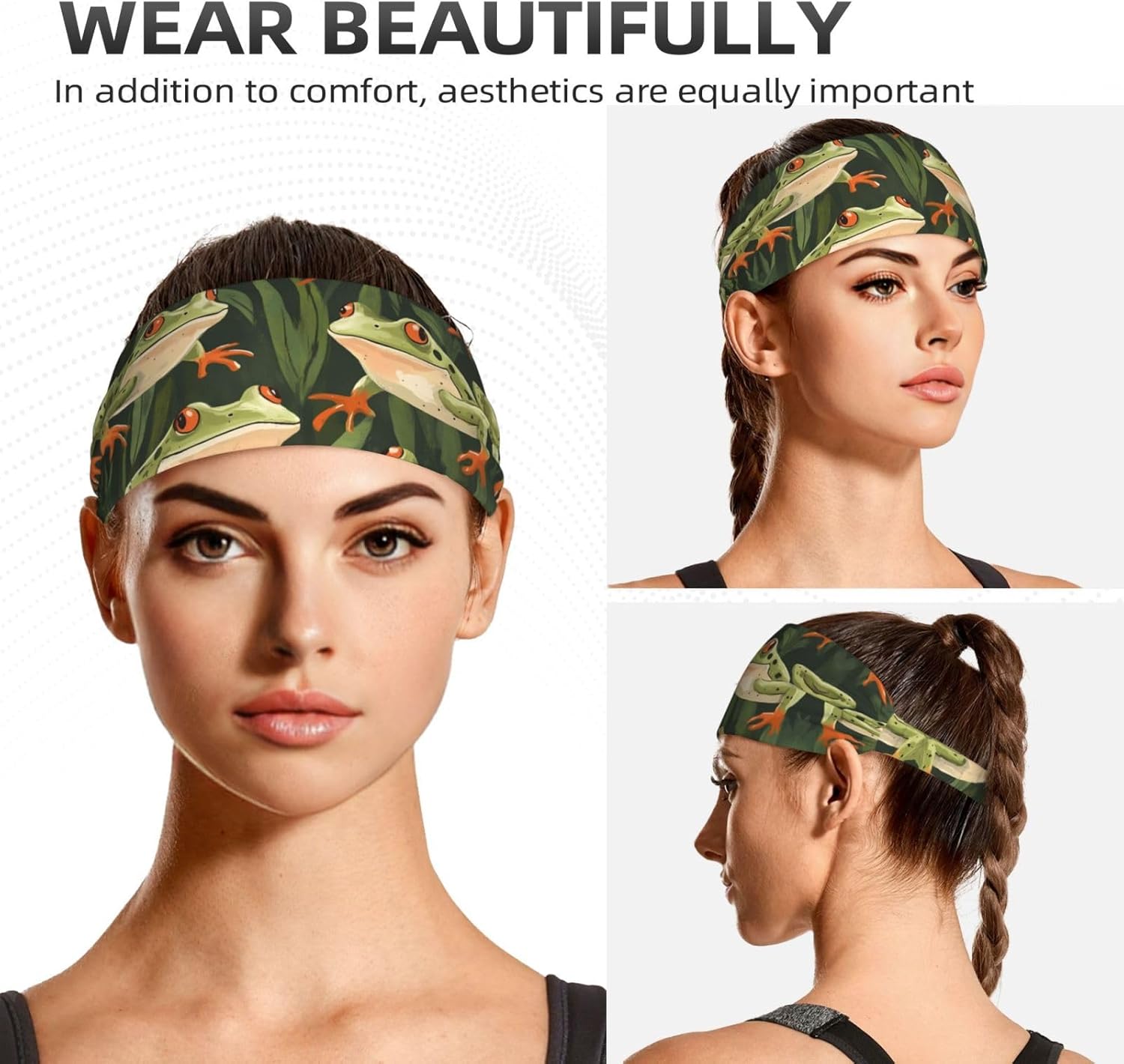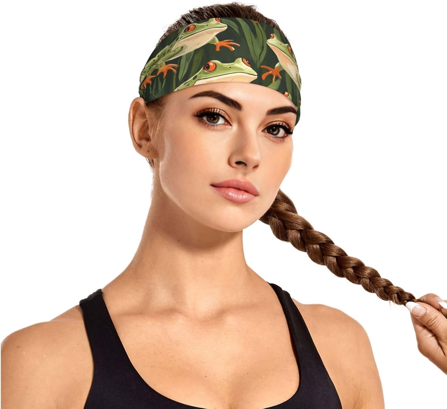 Naughty Frog Patterned sports activities headband, made from 95% polyester and 5% spandex blended cloth, smooth and breathable, fast sweat absorption, comfy to put on, protecting you dry and comfy throughout train
