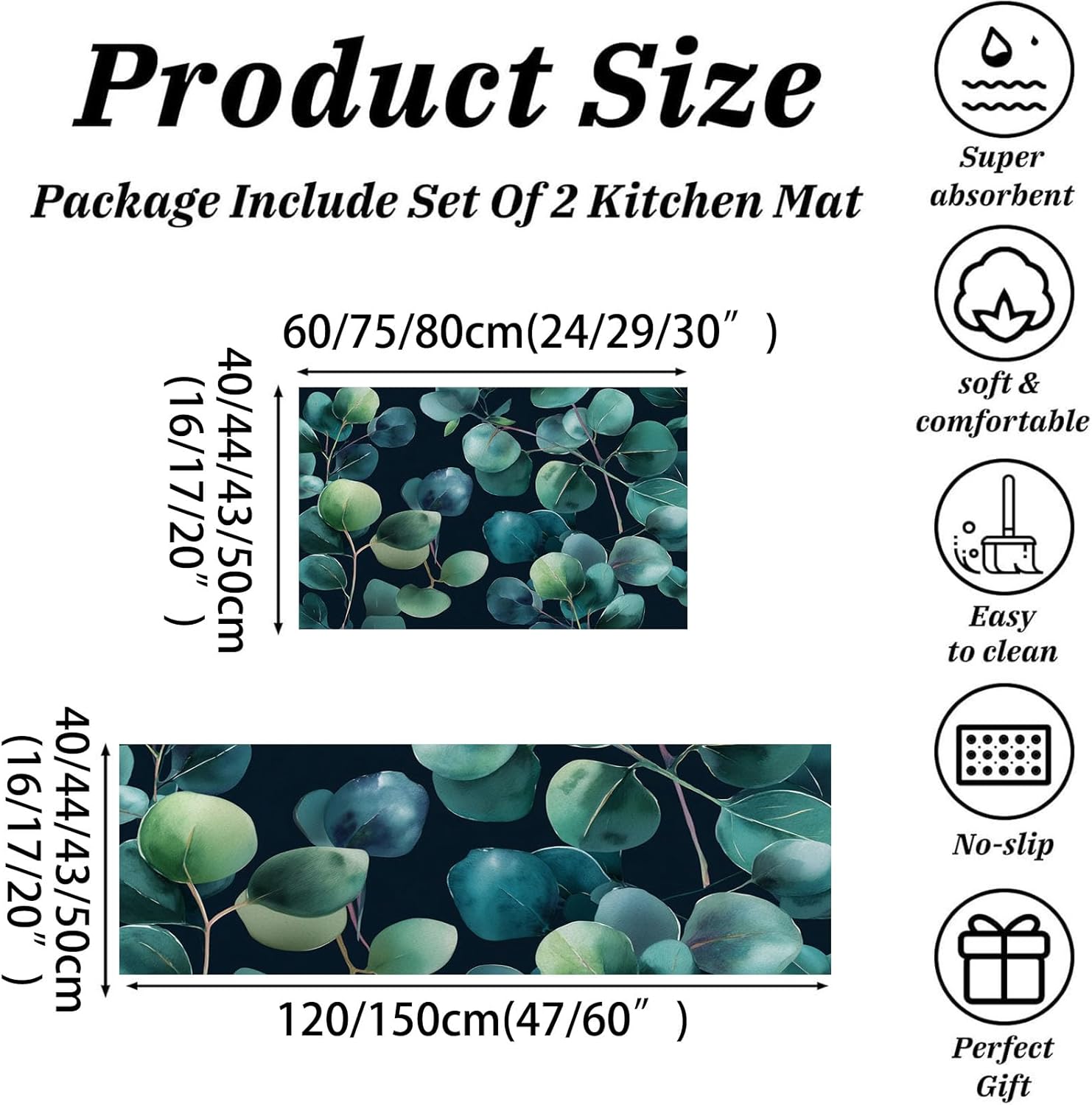 【Set of two Anti-Fatigue Mats】:This set contains two mats excellent for numerous kitchen areas just like the sink or cooking zones. The colourful and inventive Watercolor Eucalyptus Leaves design provides a splash of shade to your kitchen, making it look clear and alluring. These Pure Vegetation mats additionally make nice items for family and friends, providing each model and performance