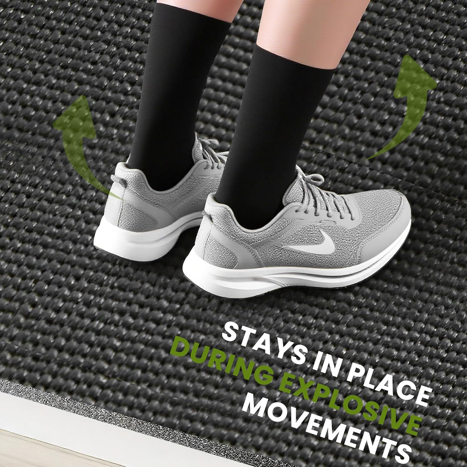 【Straightforward to Clear, Roll & Retailer】 Our massive train mat is waterproof, sweat-proof, and constructed for actual use — whether or not you are carrying sneakers or not. Merely wipe off grime, mud, or sweat with a moist material in seconds. It rolls up simply and could be saved in a nook, closet, or behind furnishings. Upkeep-free and at all times prepared to be used.