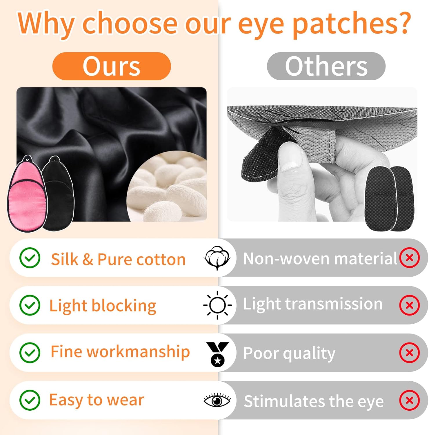 100% Mulberry Silk Materials:The attention patch medical design is crafted utilizing mulberry silk and spinning cotton. The mushy, clean floor of our medical eye patches makes them a wonderful answer for these needing prolonged put on, providing all-day consolation and breathable safety. Particularly advisable for customers looking for premium eye patches for delicate pores and skin