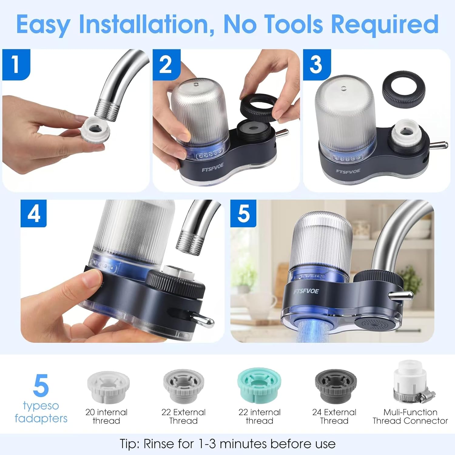 Straightforward Set up: The common faucet water air purifier designed for straightforward set up with a number of adapters, that match most traditional taps, doesn’t match pull-out, hand-held, spray type taps or taps with sensor, you possibly can set up this sink faucet filter rapidly and simply in just some easy steps with none particular instruments or plumbing data.