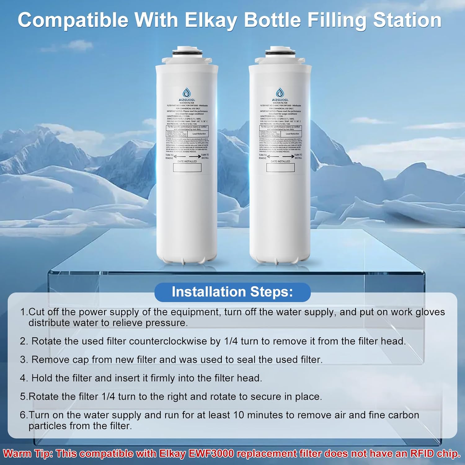 Save Price:The water filter 51300C3PKS reduces filter adjustments and upkeep prices. The 51300C3PKS filter replaces for elkay 51300C3PKS filter, exchange each 3000 gallons or 1 12 months after set up.Heat Tip: This 51300C3PKS filter doesn’t have an RFID chip.