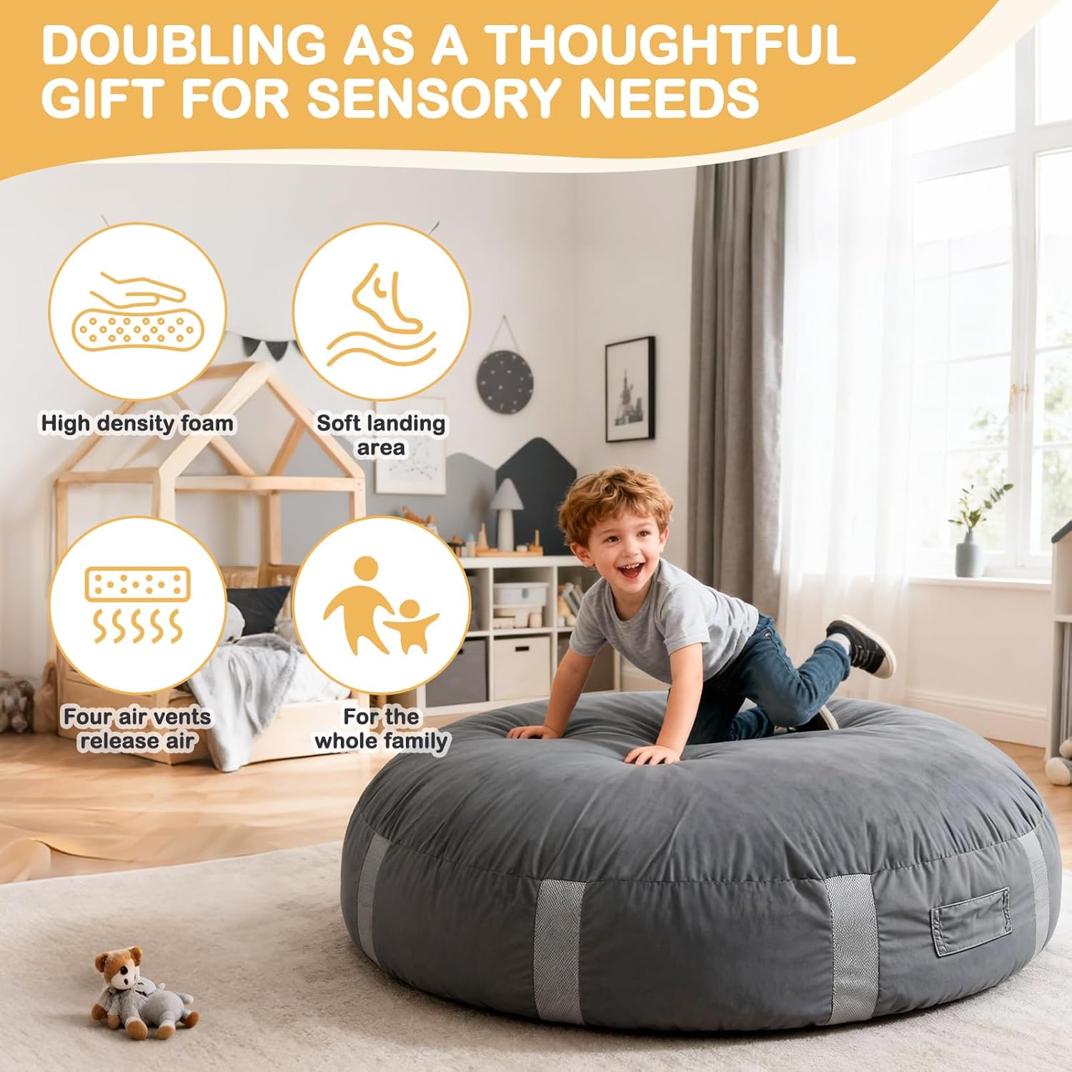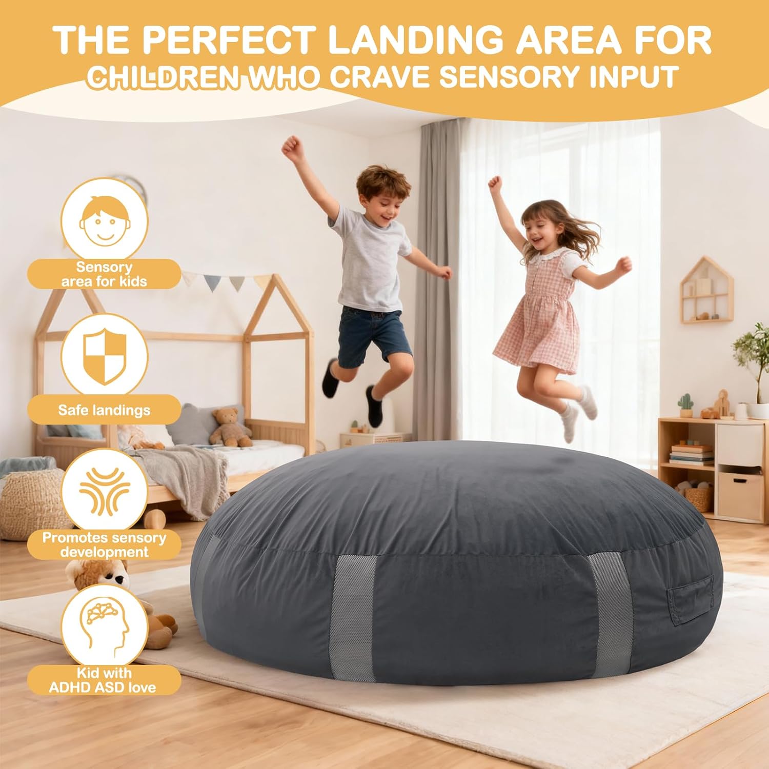 Spherical Crash Mat: Particularly designed for teenagers with ADHD or autism, this round crash mat combines EPE foam with comfortable material. It gives light tactile stimulation to appease anxiousness whereas making a protected zone for energetic leaping and free play, supporting holistic sensory improvement