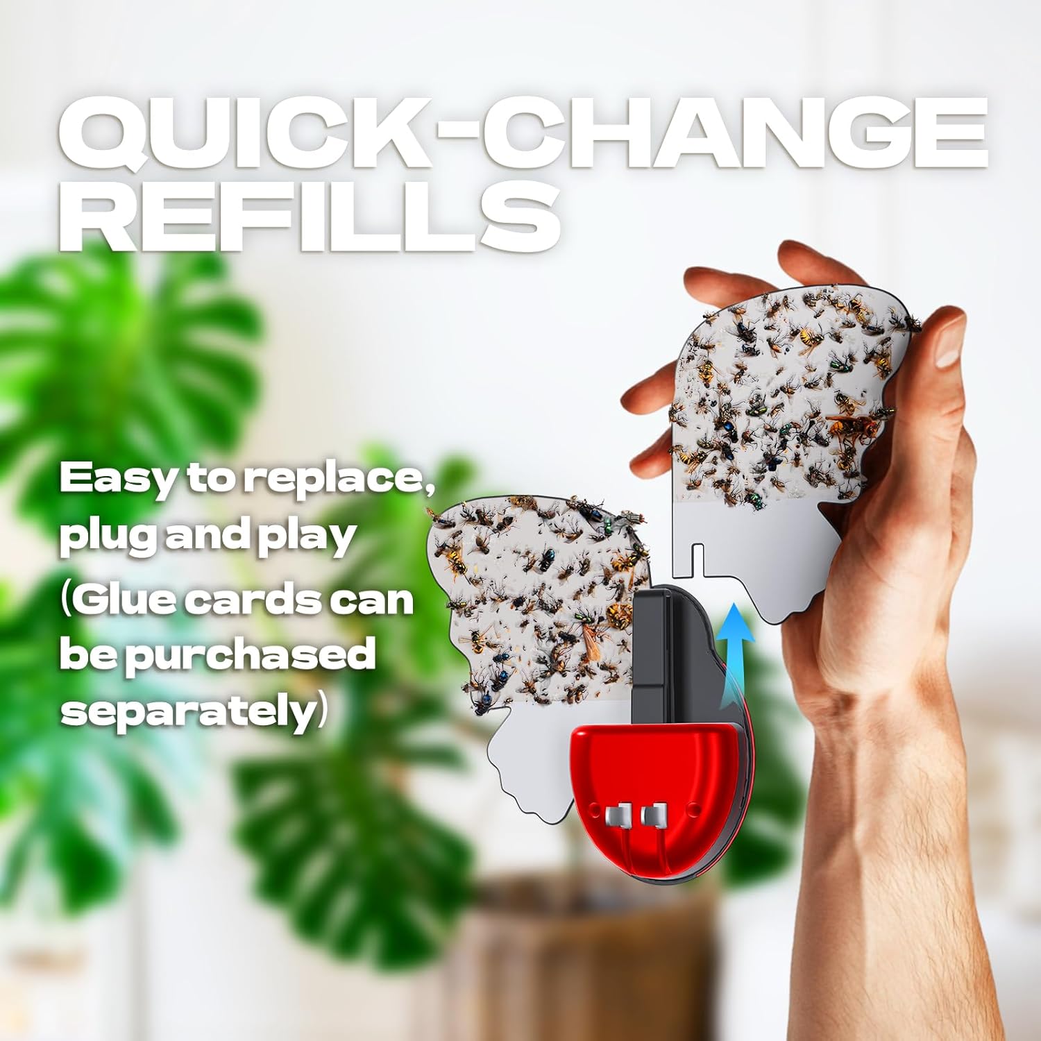 PACKAGE DETAILS – 1 plug-in fly lure, 3 pair of glue playing cards. Reusable, and glue playing cards will be bought individually.