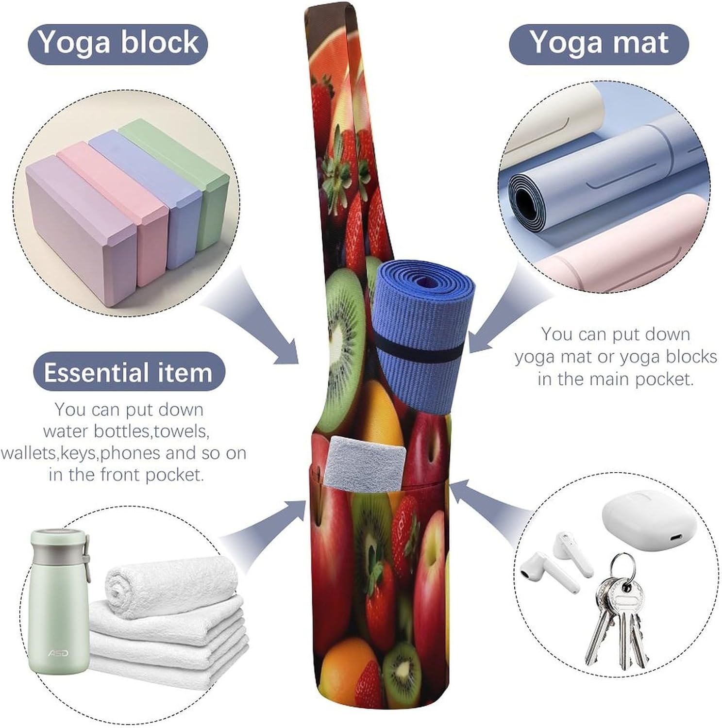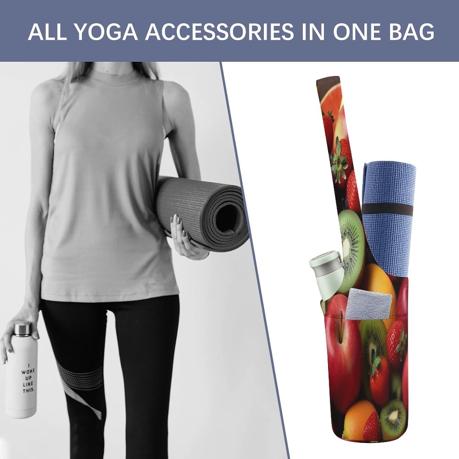 Larger And Higher: Yoga Mat Bag Total Size 36.6 Inches, Width 7.1 Inches.The Recent Fruits And Greens Yoga Tote Bag Suits Thicker And Wider Yoga Mat Simply. with Yogis Real Wants in Thoughts, This Yoga Bag Brings A lot Comfort into Every day Group And Storage of The Yoga Equipment, Multi-Purposeful And Sensible.