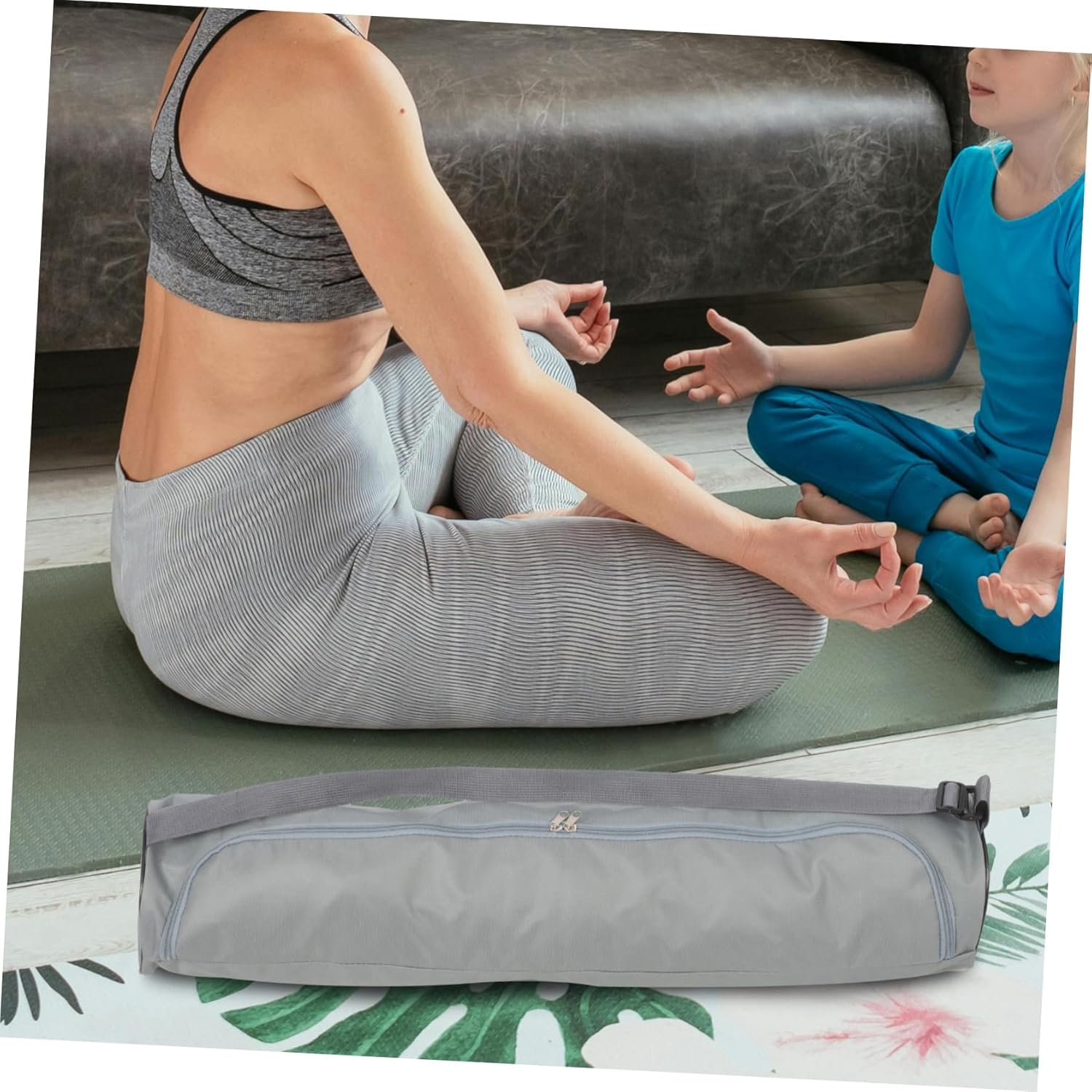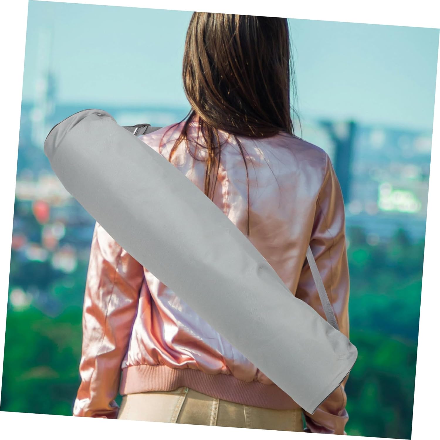 – Shade: Mild gray yoga mat tote.