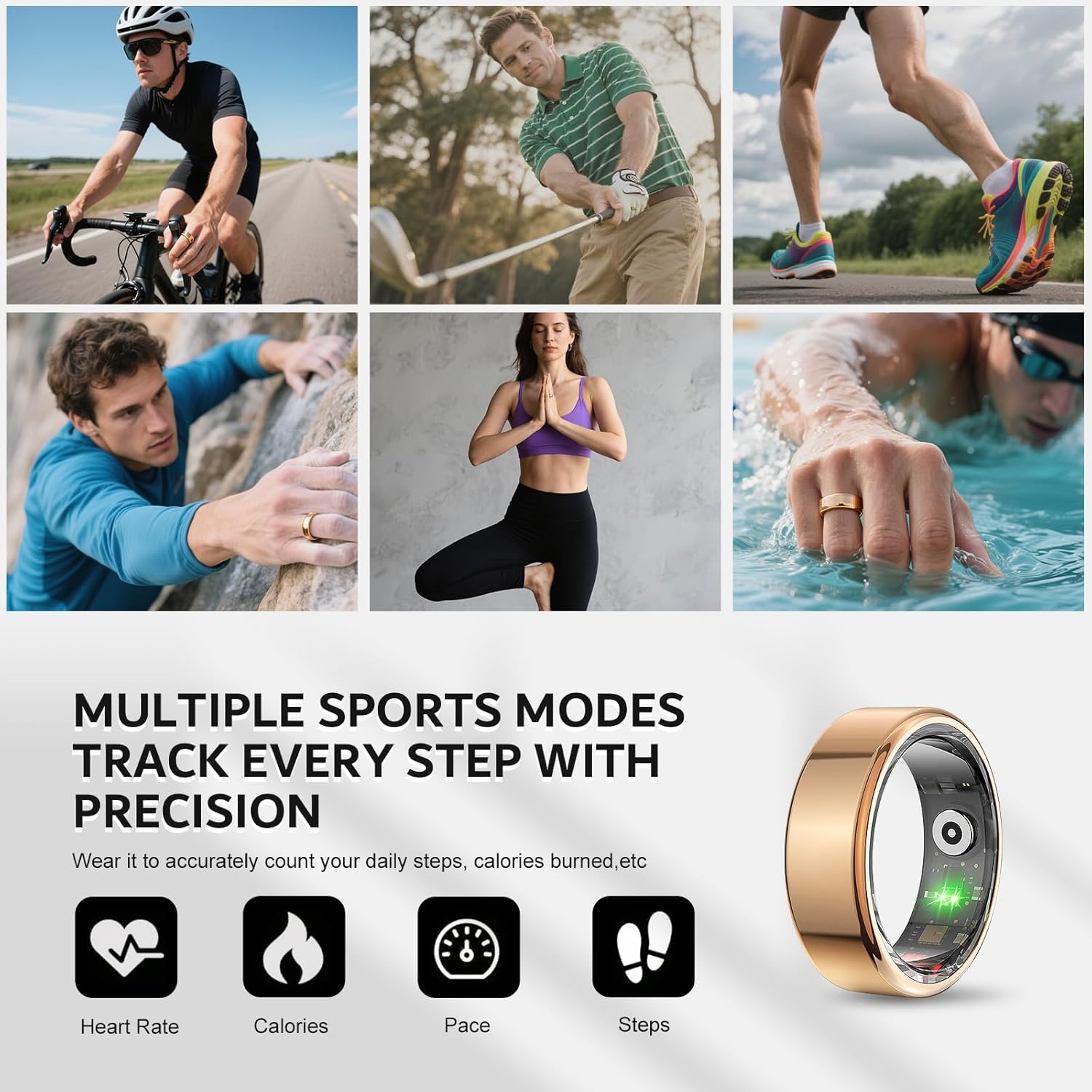 [128 Sports Smart Ring] Versatile health rings monitor steps, energy, and 128+ actions (swimming/yoga/operating) with 80m waterproof safety from pool to ocean