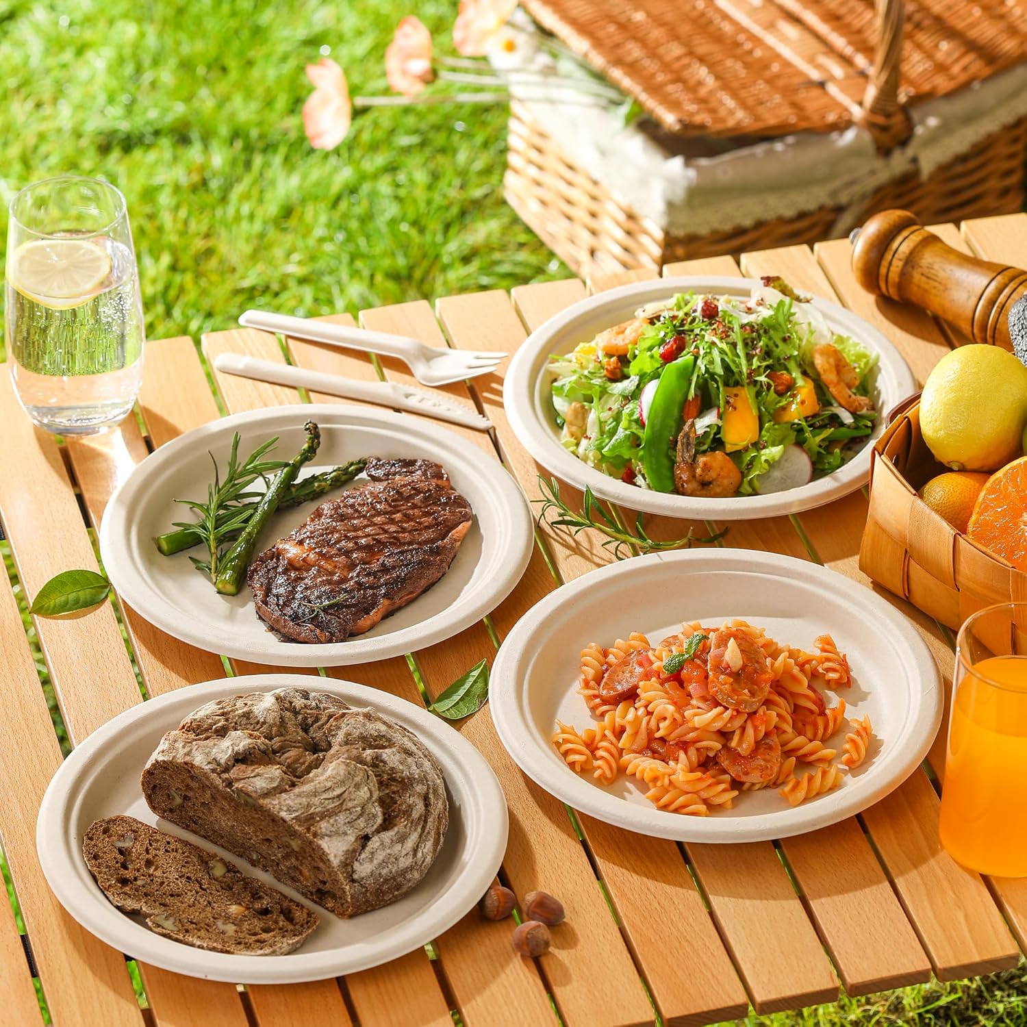 Disposable and Sturdy: Constituted of renewable assets, bagasse plates are a superb alternative for single-use occasions and gatherings. They’re sturdy and inflexible, can maintain heavy meals objects with out bending or breaking, and are perfect for each cold and warm meals objects. After use, they are often composted together with different natural waste.