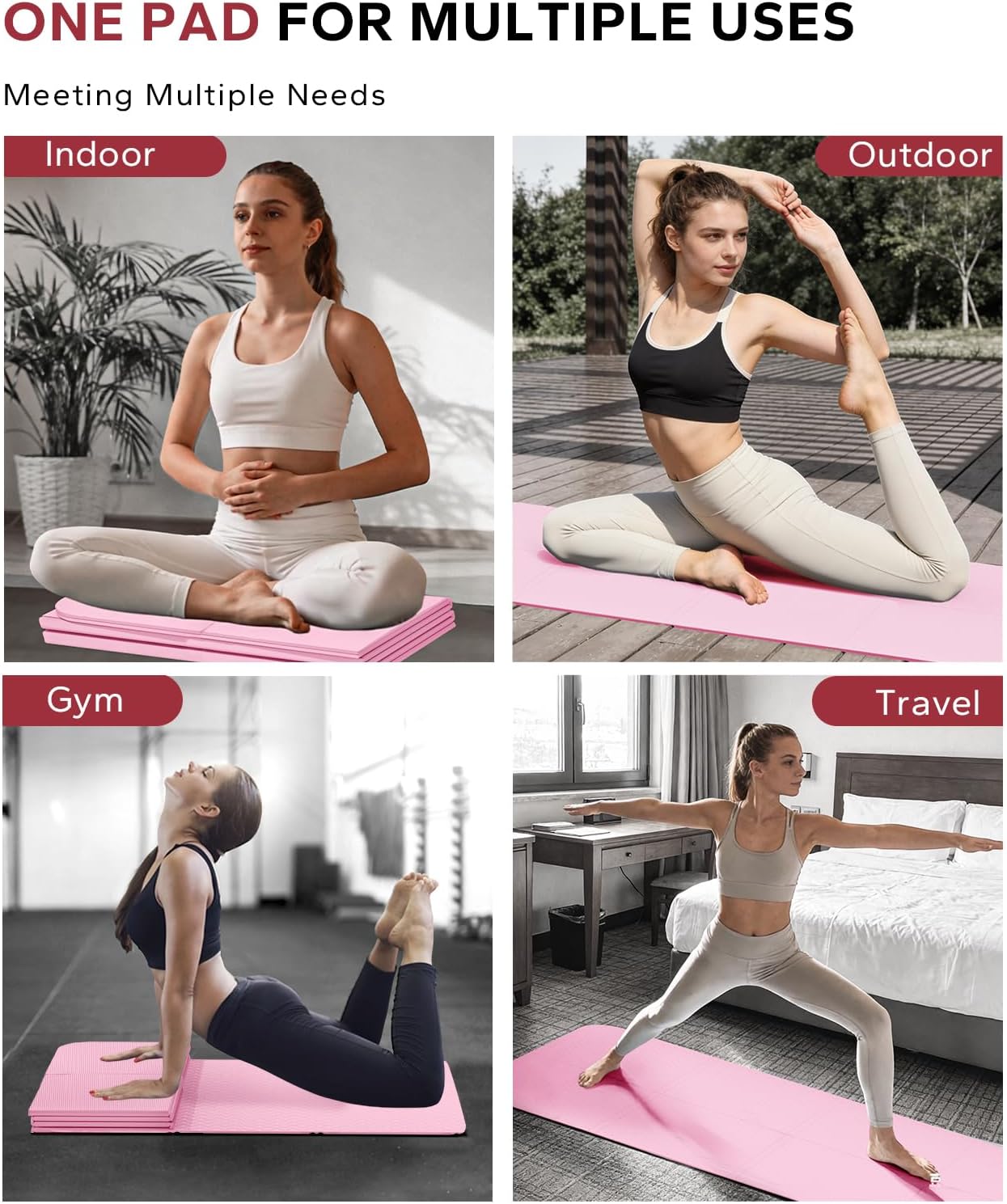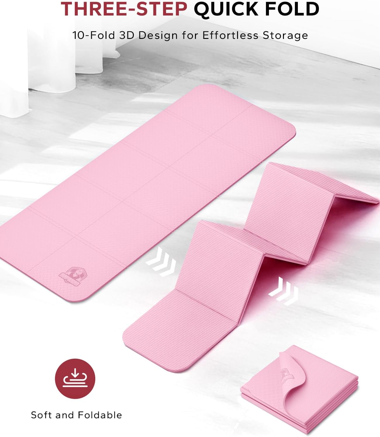 Foldable & House-Saving Design:Unfolds to a full-size 72″x24″x0.24″ folding yoga mat for ample motion area—then folds right down to a compact 15″x12″x4″(70% smaller than rolled mats). It tucks simply into the included carry bag, taking on minimal room in suitcases, backpacks, or closet storage.