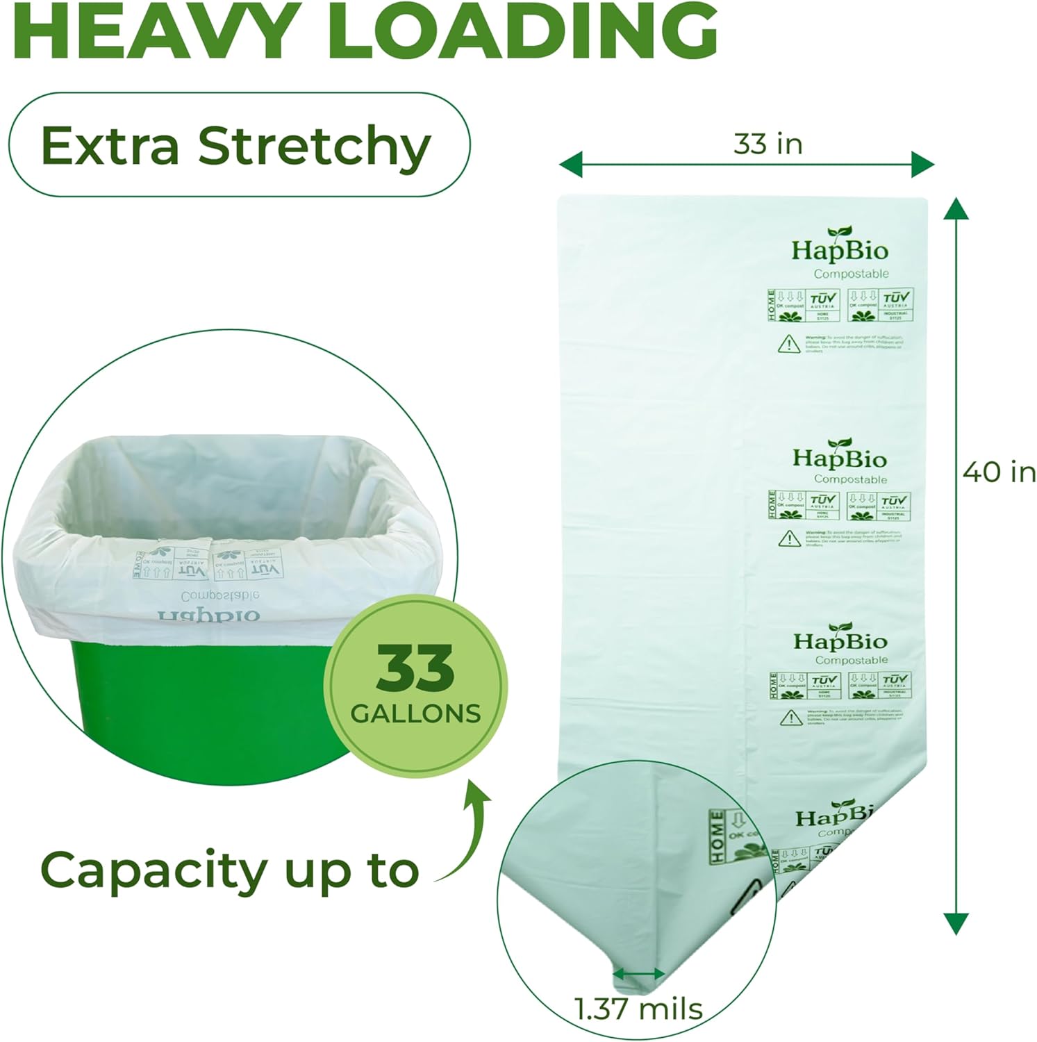 ♻️[Heavy Duty]♻️ HAPBIO compostable baggage are designed with a capability of 33 gallons (124.9 L). There are 120 trash baggage/8 rolls; every bag measures 33L x 40W inches with a thickness of 1.37 mils, permitting heavy obligation and huge waste quantity.