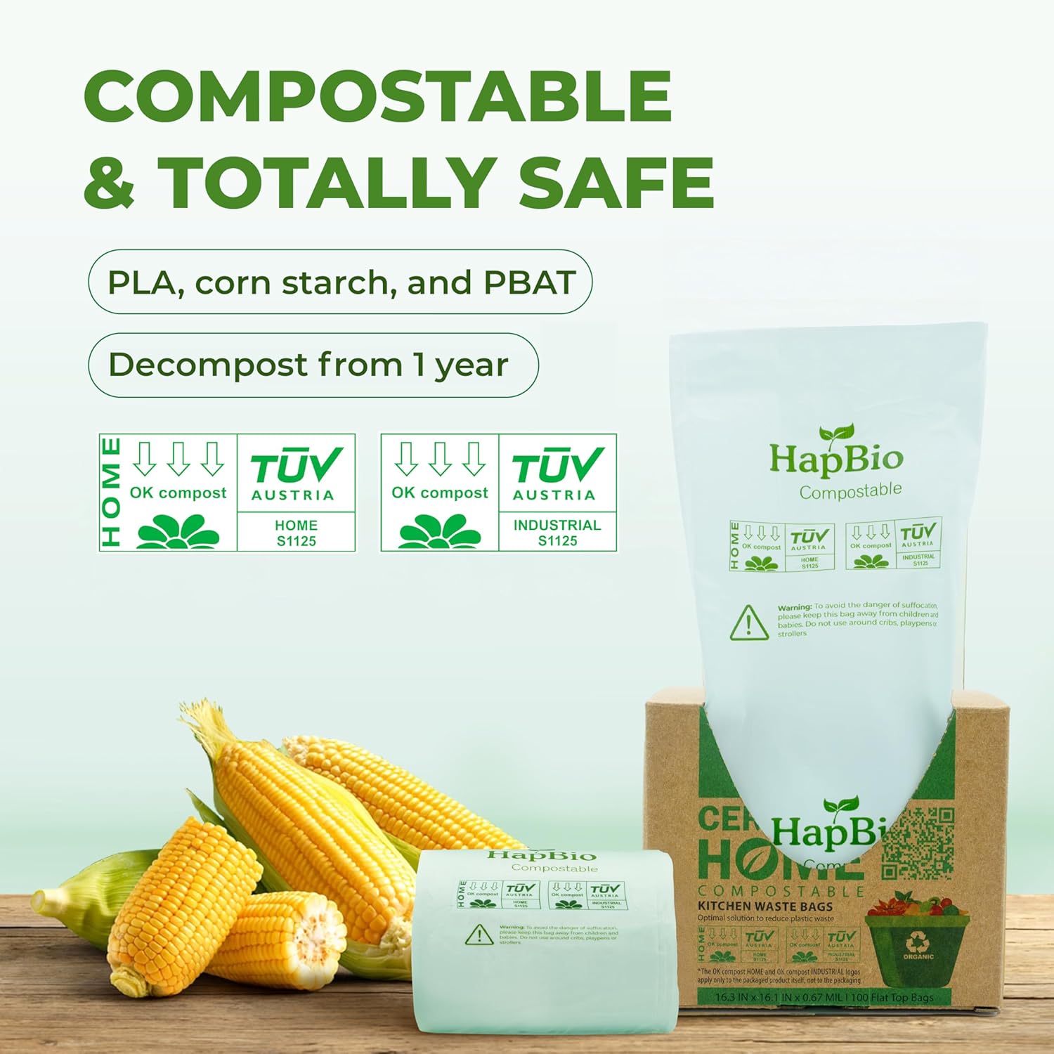 ♻️[Qualified Trash Bags]♻️ Licensed by BPI and OK Compost House, HAPBIO disposable and compostable trash baggage are made from PLA, corn starch, and PBAT and manufactured strictly and certified to deliver you the best trash bag high quality.