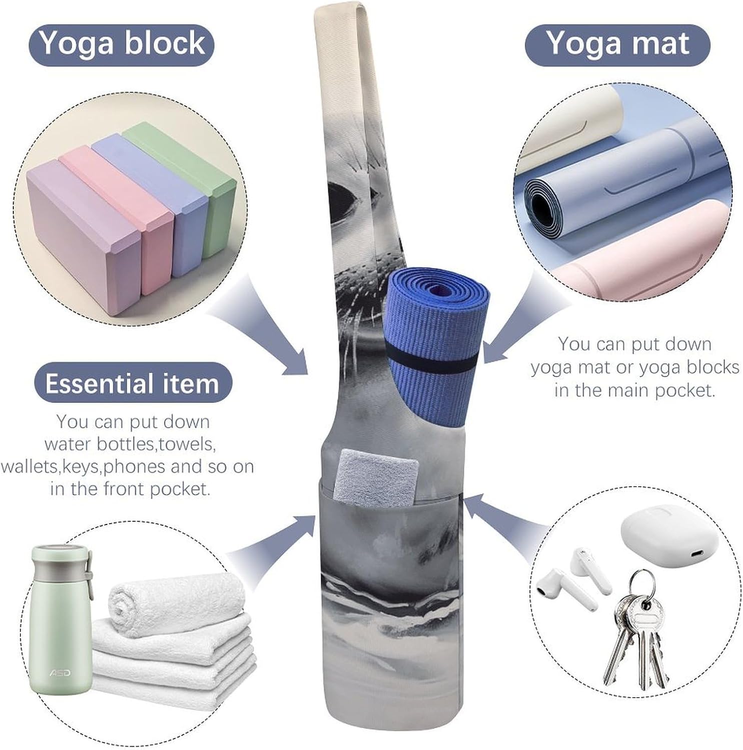 Spacious Design: The big capability of this yoga mat carrying bag accommodates mats of all thicknesses, blocks, towels, and extra, with an inside zipper pocket for valuables like cellphone and keys, and an exterior pocket for water bottles or different yoga gear. Excellent for these balancing health and day by day life