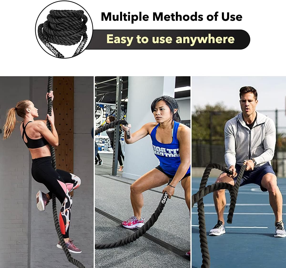 Versatile Use: Ideal for full-body workouts, this rope is great for physical training, battle rope exercises, fitness routines, strength building, and more.