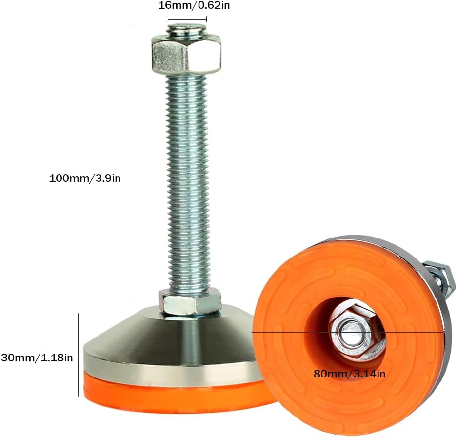 2.Giant adjustable leveling ft measurement: The usual pitch for an M16 thread is 2.00 millimeters (mm). Screw size is 100 mm/3.9 inches, and base diameter is 80 mm/3.14 inches,Bundle Comprises:2x Leveling Ft