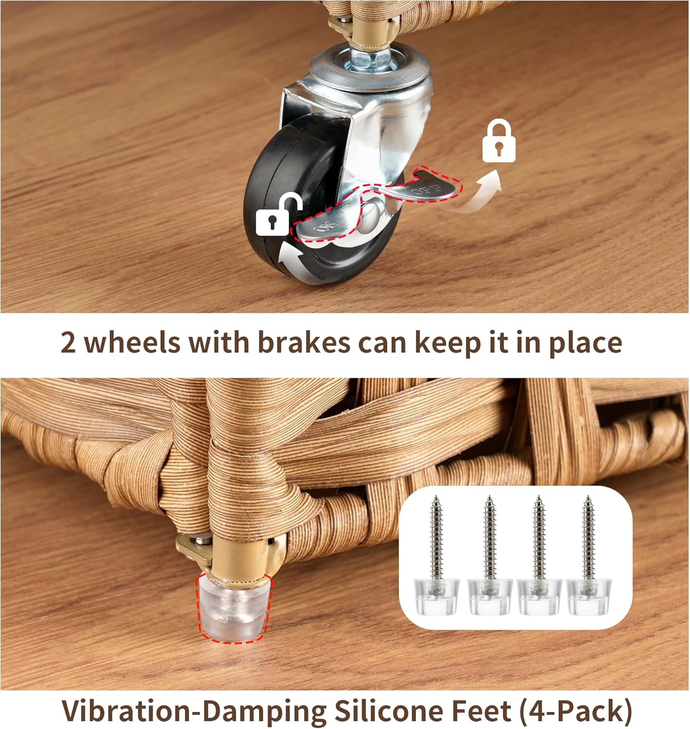 【Strengthened Metal Body + PE Rattan】 Crafted from PE rattan weave, best for toilet use with strengthened metal body (holds 55 lbs) — smoother and extra sturdy than pure wicker baskets.