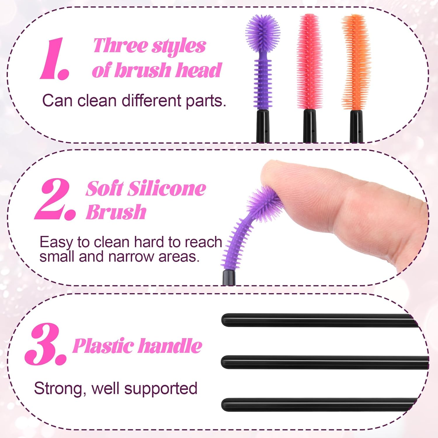 These small cleansing brushes are made of soppy, versatile silicone, designed to bend simply with out breaking. The sturdy materials ensures they can be utilized repeatedly for long-term cleansing wants.