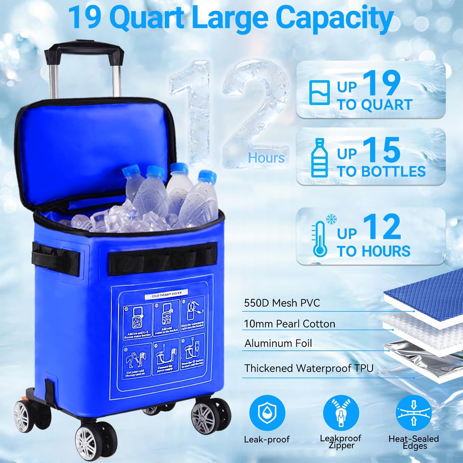 【Person-Pleasant Moveable Design】 Specifically geared up with a handy mixture of a telescopic deal with and 4 360° swivel wheels, this ice machine for knee after surgical procedure permitting simple one-person motion and use at residence or on the go—no help required. This design successfully prevents secondary accidents for post-surgery customers