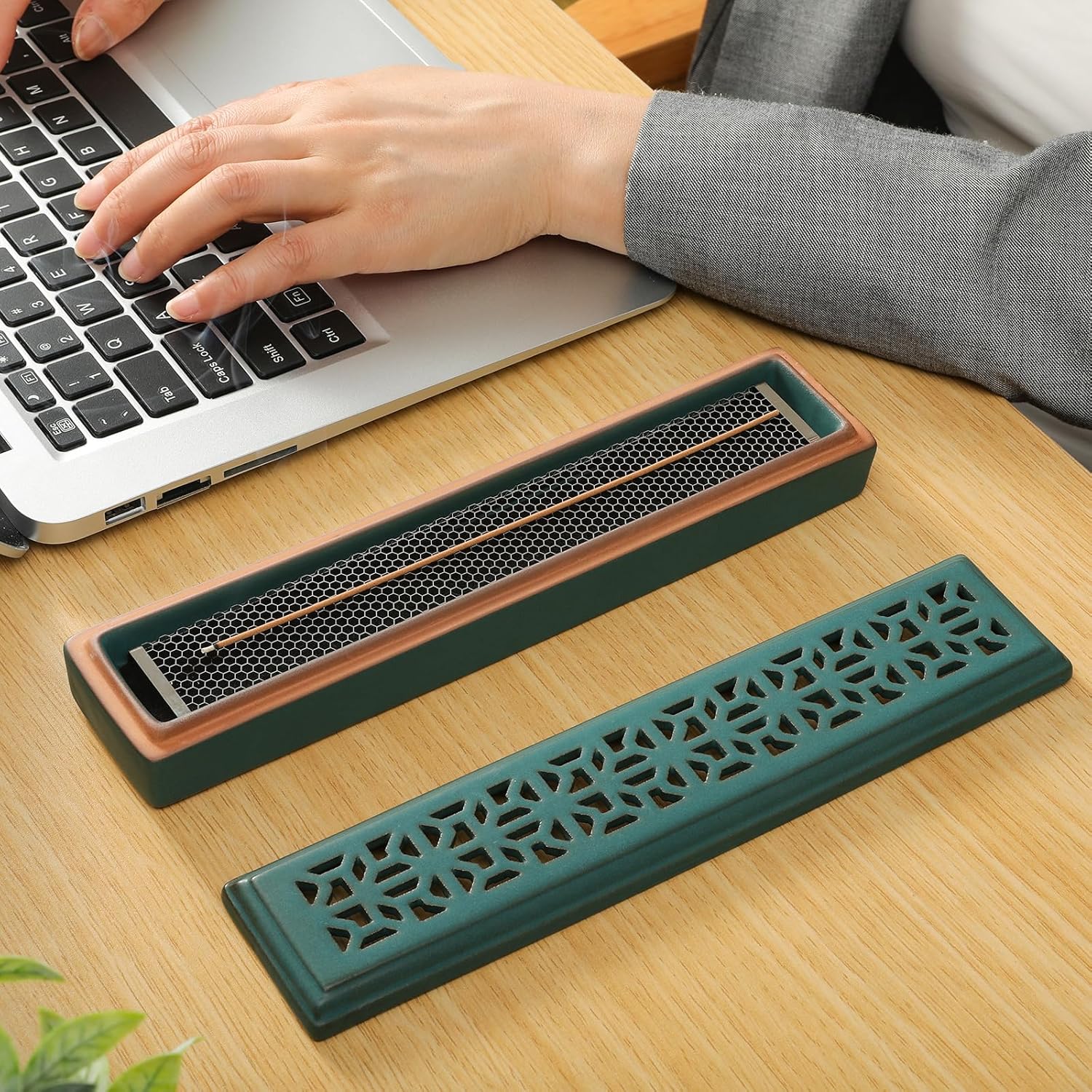 CEREMONY Incense Holder,Ceramic Incense Holder for Sticks with Ash Catcher,Coffin Type Incense Field,Incense Burner for Meditation Yoga Spa Room Decor(Inexperienced)