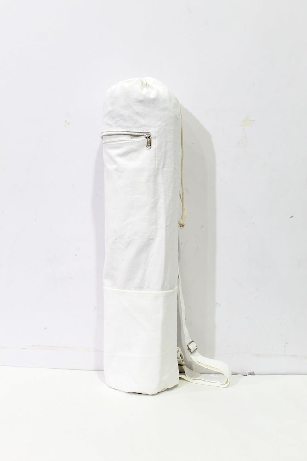 INDIAN CRAFT CASTLE Yoga Mat Bag, Full-Zipper Yoga Mat Carrier with Adjustable Strap, Front & Exterior Phone Pocket, Stylish & Functional Fitness Mat Holder for Women & Men (White)